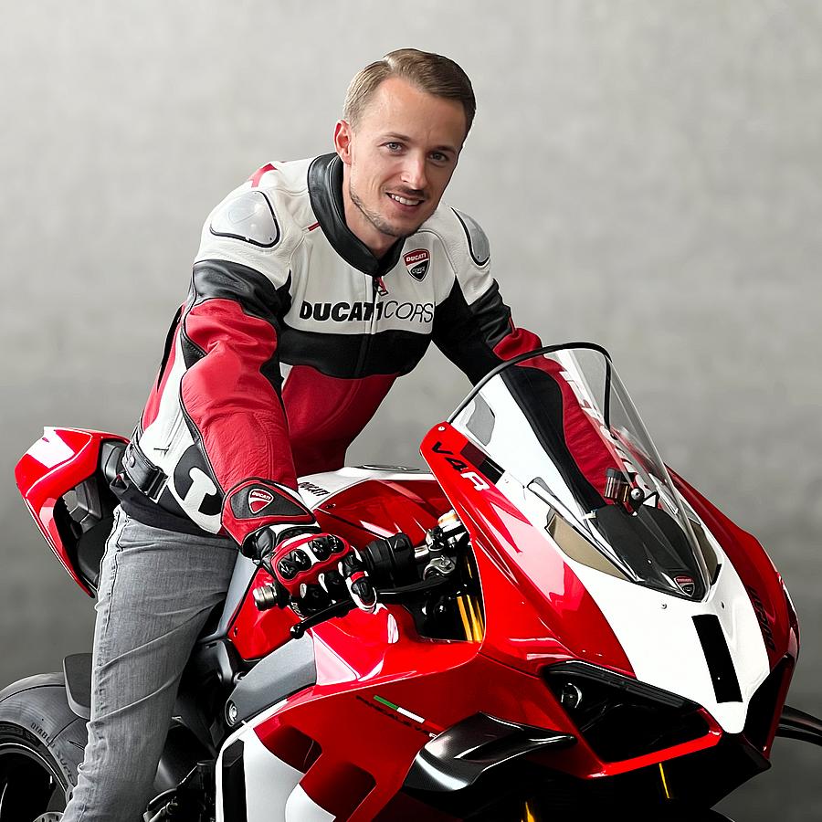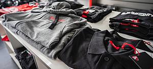 Bei uns findest du das passende Outfit, egal ob von Ducati, Honda, Dainese oder IXS. Wir bieten Fahrerausstattung vom Helm bis zum Stiefel, Freizeitbekleidung in allen Facetten von T-Shirts bis Kappen und natürlich jede Menge Accessoires wie Uhren und Schlüsselanhänger.