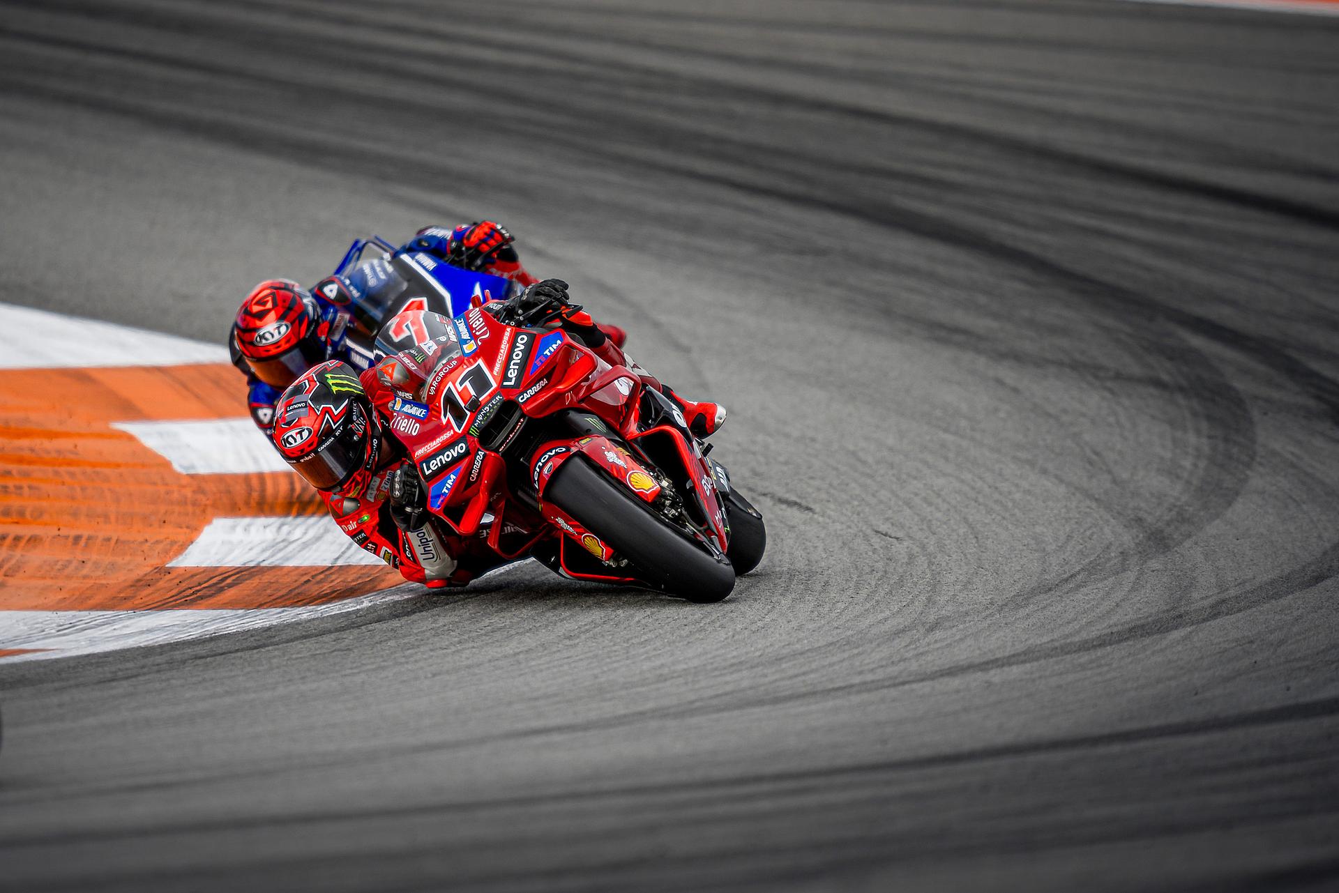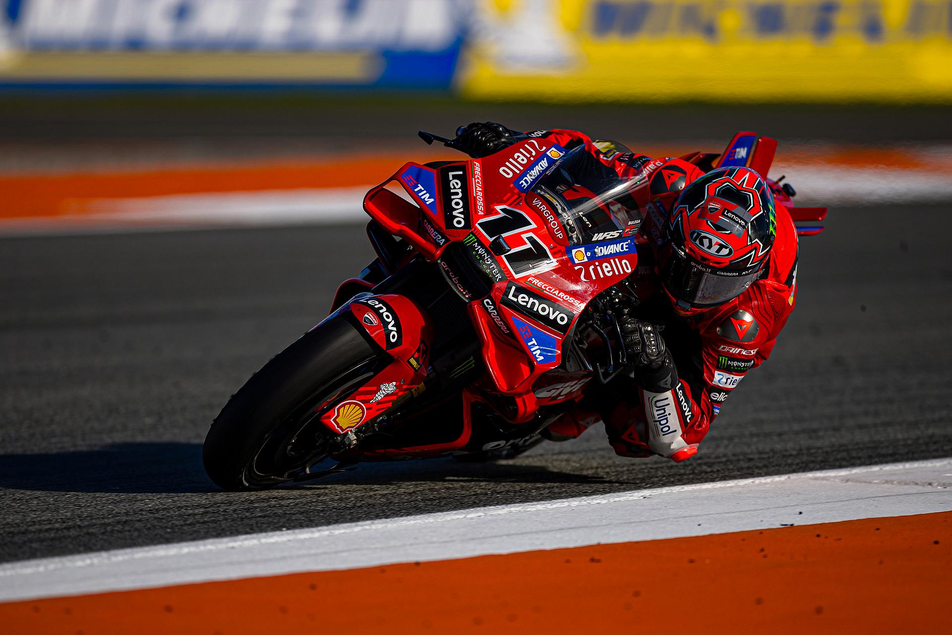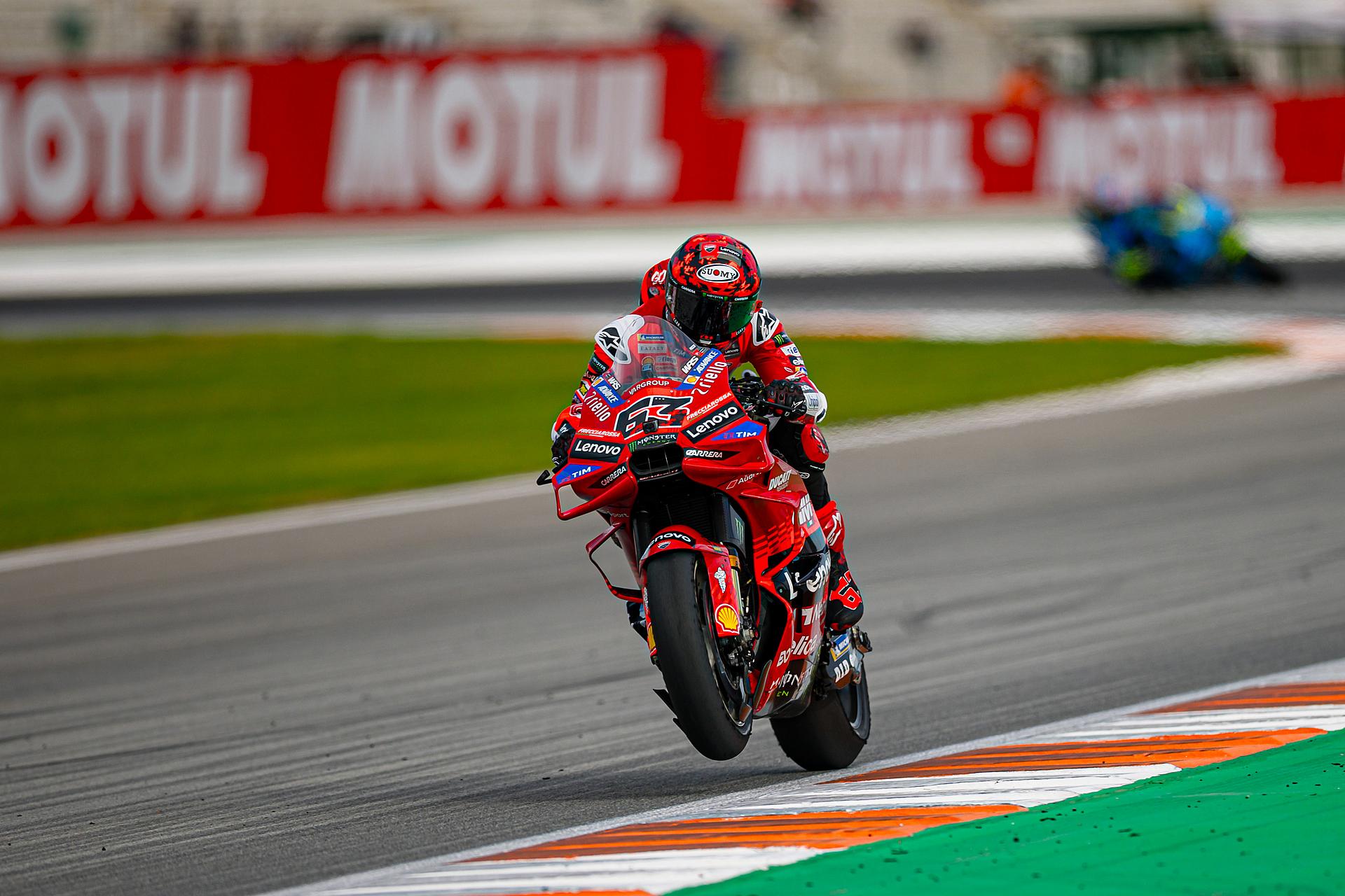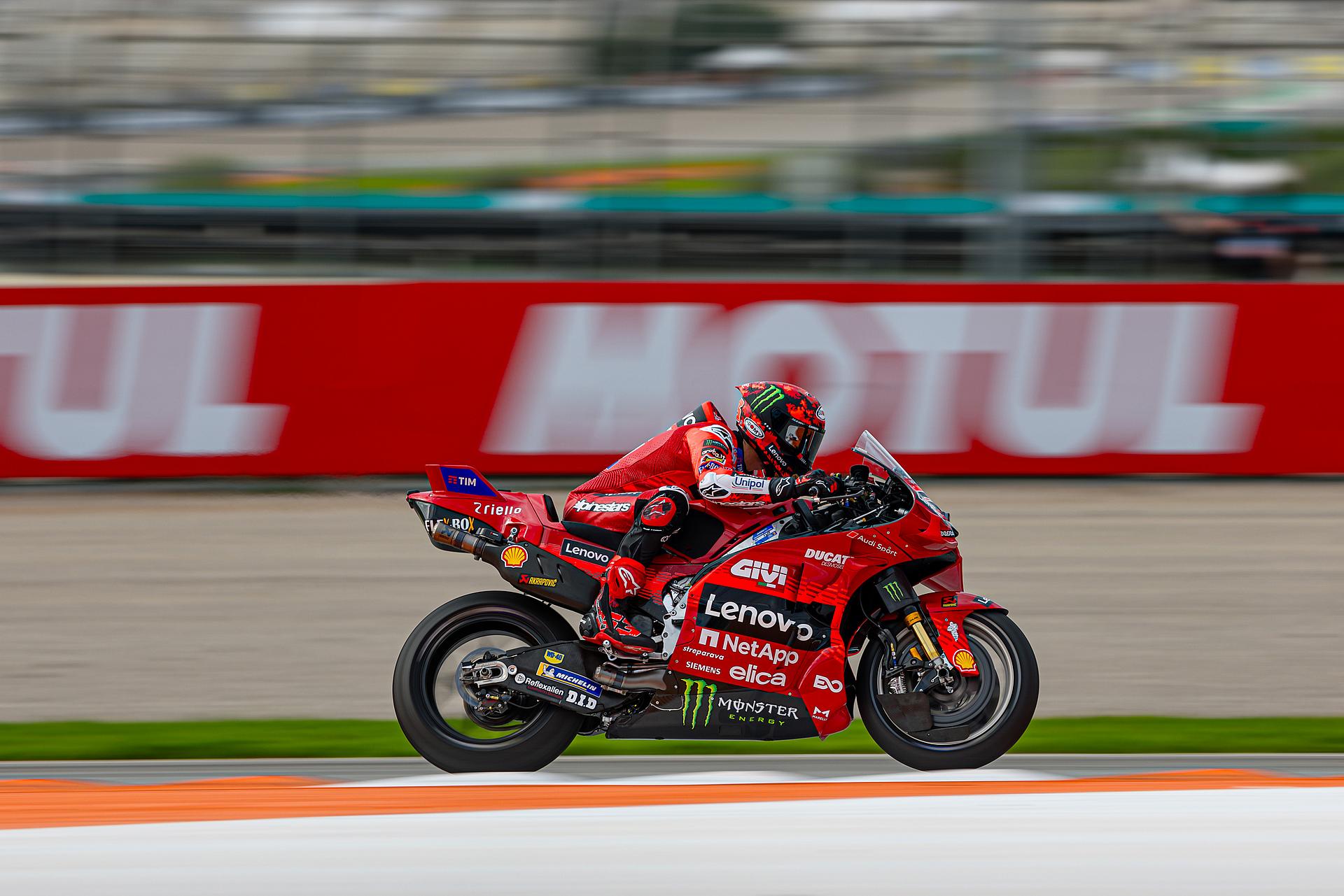 Das Ducati Lenovo Team bestritt den letzten Freitag der MotoGP-Saison 2025 auf dem Circuit Ricardo Tormo in Valencia. Francesco Bagnaia beendete ein hart umkämpftes Training auf Platz vierzehn, während Nicolò Bulega als Vierundzwanzigster ins Ziel kam.