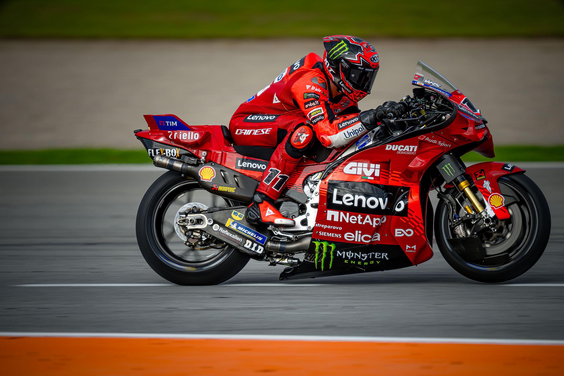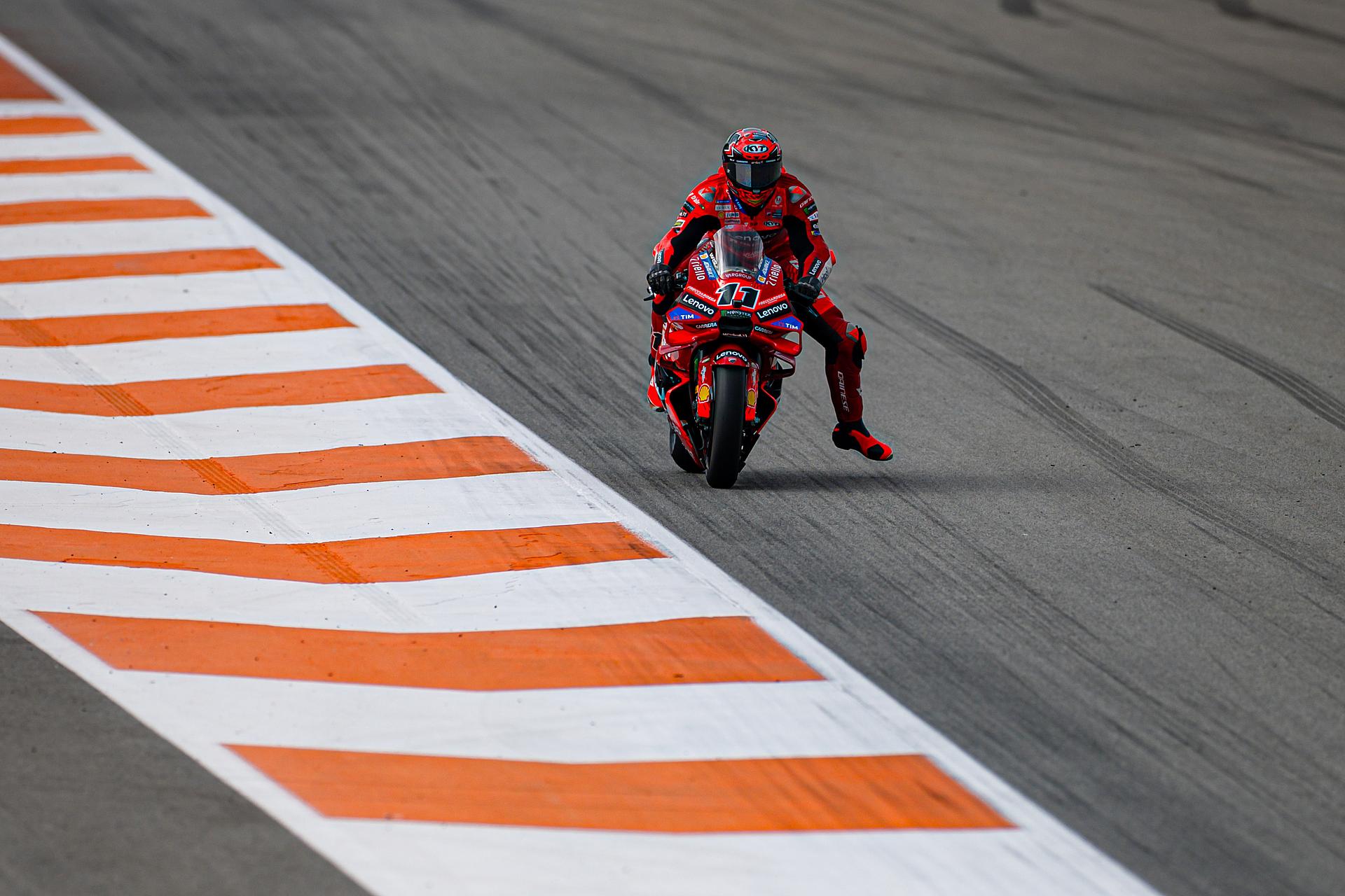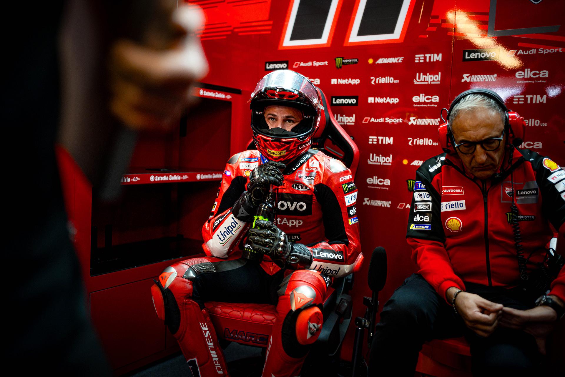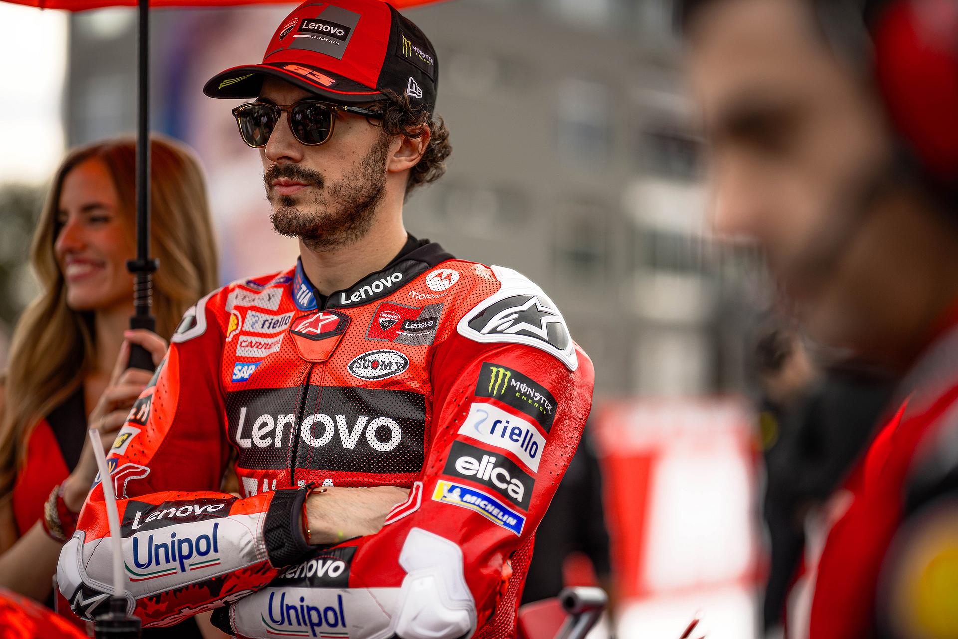 Nach einem vielversprechenden zweiten Platz im FP2 wurde Bagnaia in Q1 am Samstag durch ein Problem beeinträchtigt und beendete Qualifying 1 als Sechzehnter in der Startaufstellung für den Sprint und den Grand Prix am Sonntag. Im anschließenden Sprint kämpfte sich Pecco in den ersten Runden auf den dreizehnten Platz vor, bevor er als Vierzehnter ins Ziel kam. Nicolò Bulega – von Platz zweiundzwanzig gestartet – arbeitete sich auf den sechzehnten Platz vor und fuhr mit seiner Desmosedici GP ein konstantes Tempo.