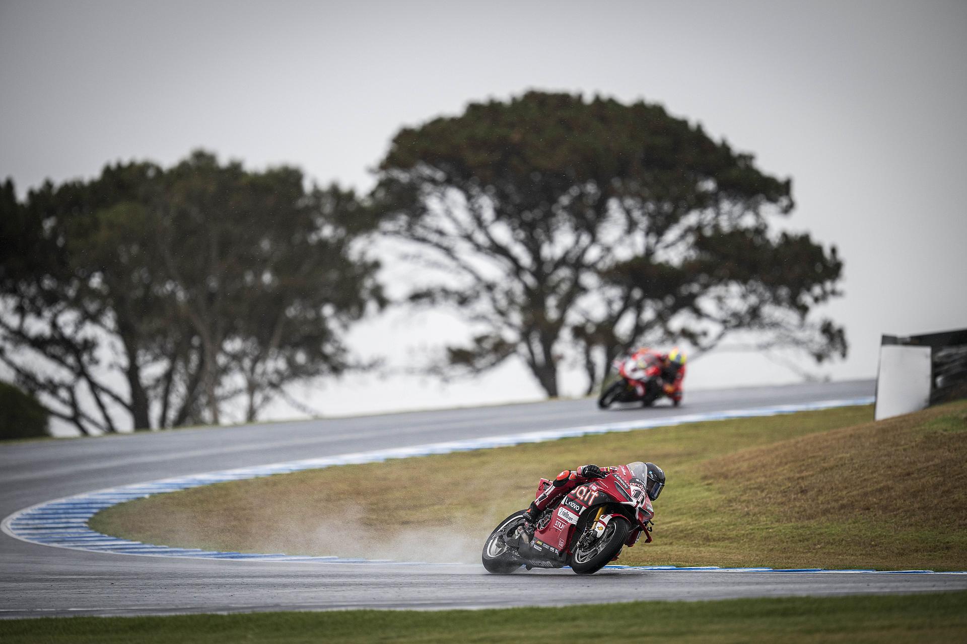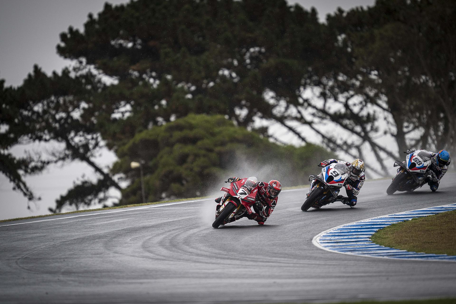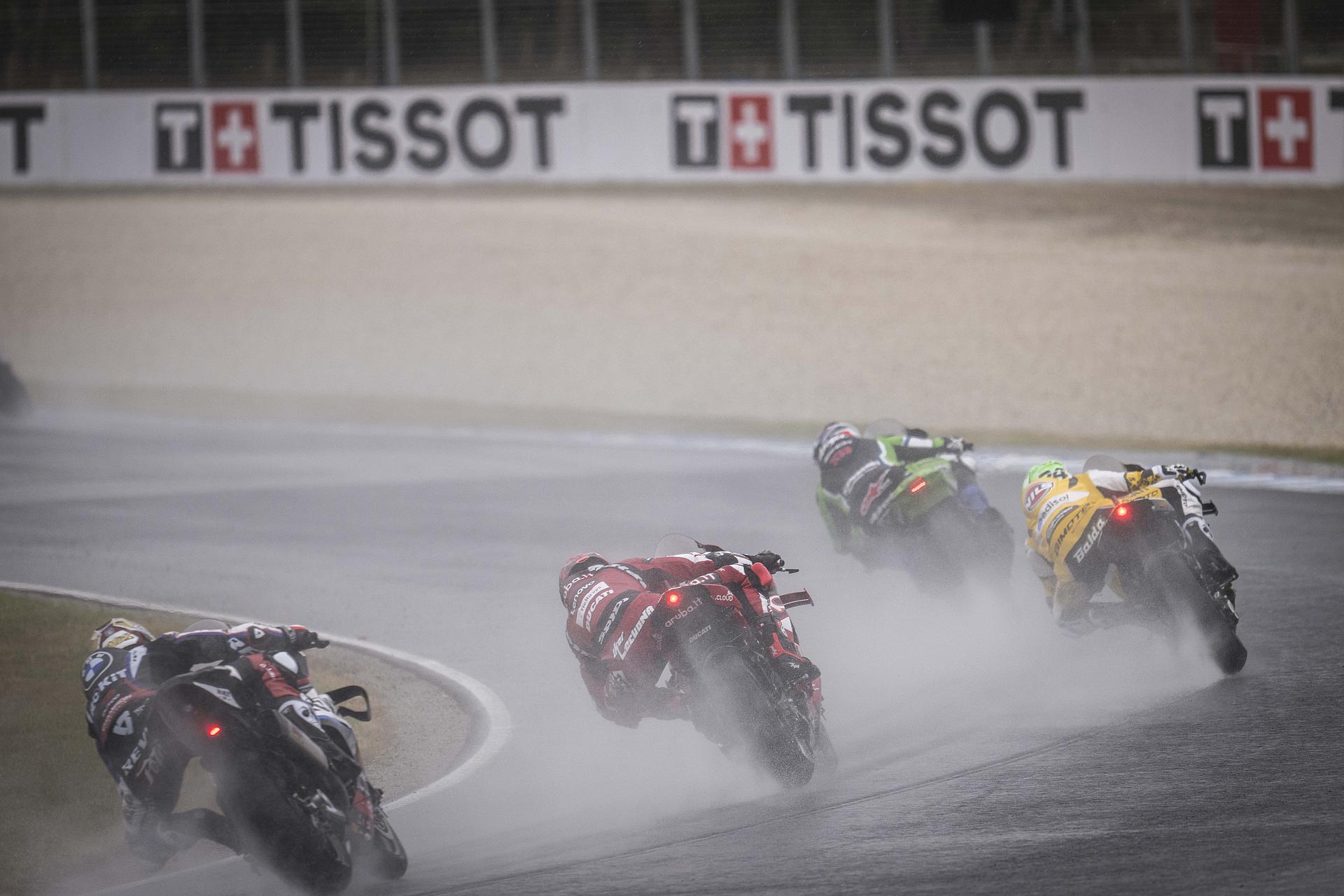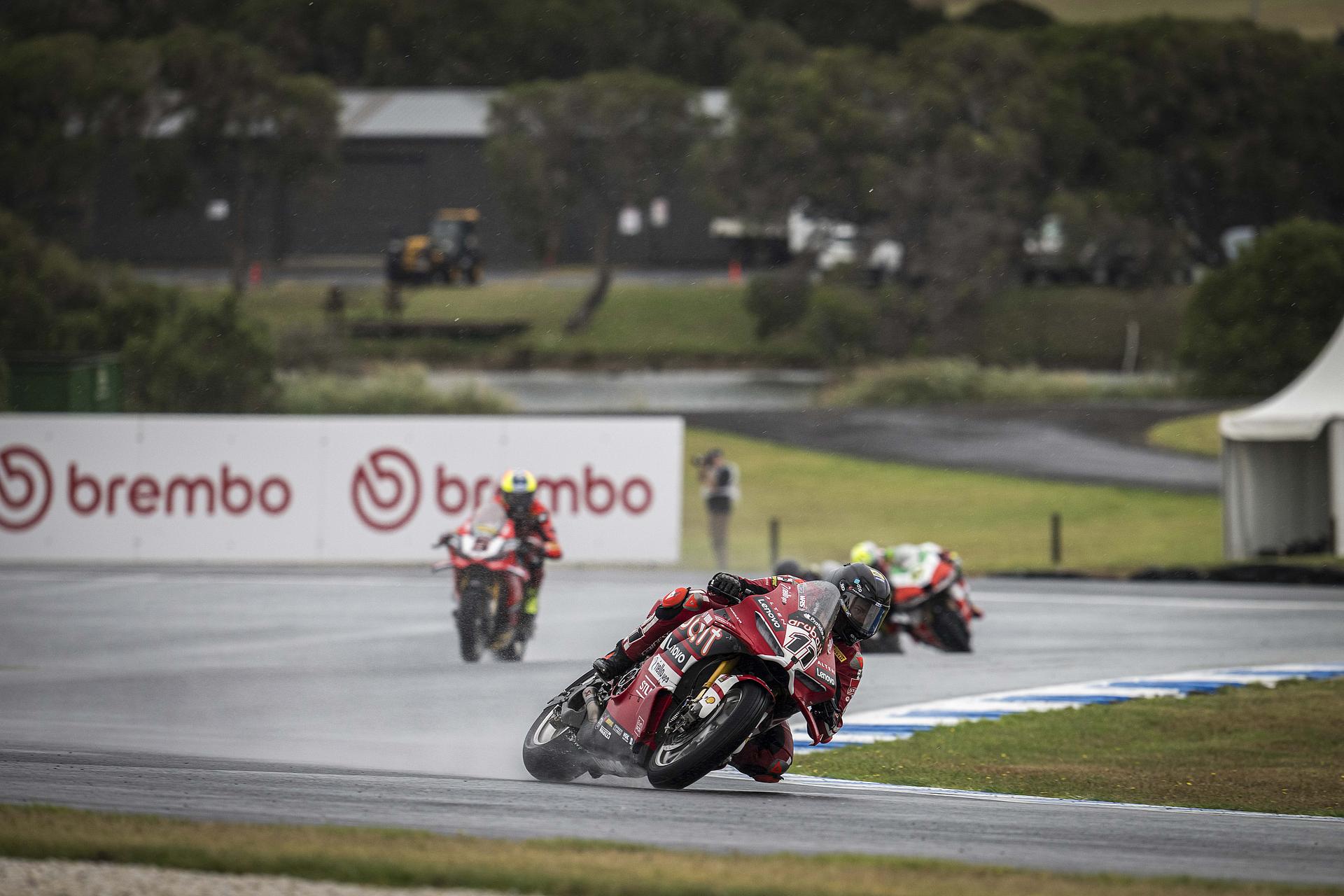 Nach seinem Sieg am Sonntag im Superpole-Rennen, das er nach einem schlechten Start (P4 in der ersten Runde) mit einer großartigen Aufholjagd für sich entscheiden konnte, zeigte Bulega in Rennen 2, das bei starkem Regen ausgetragen wurde, eine perfekte Leistung.