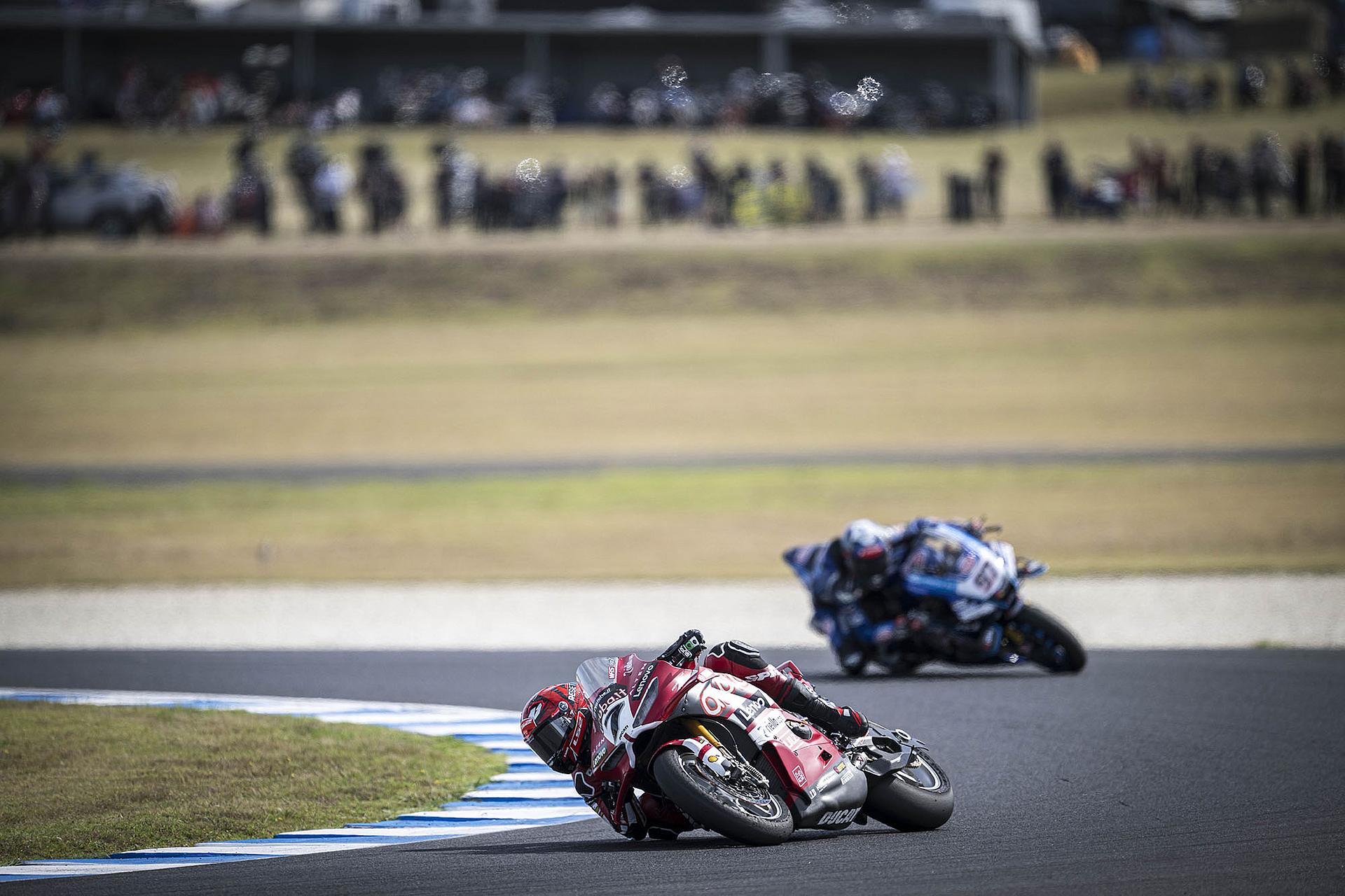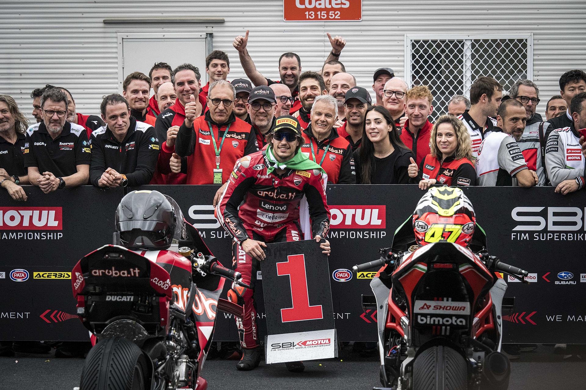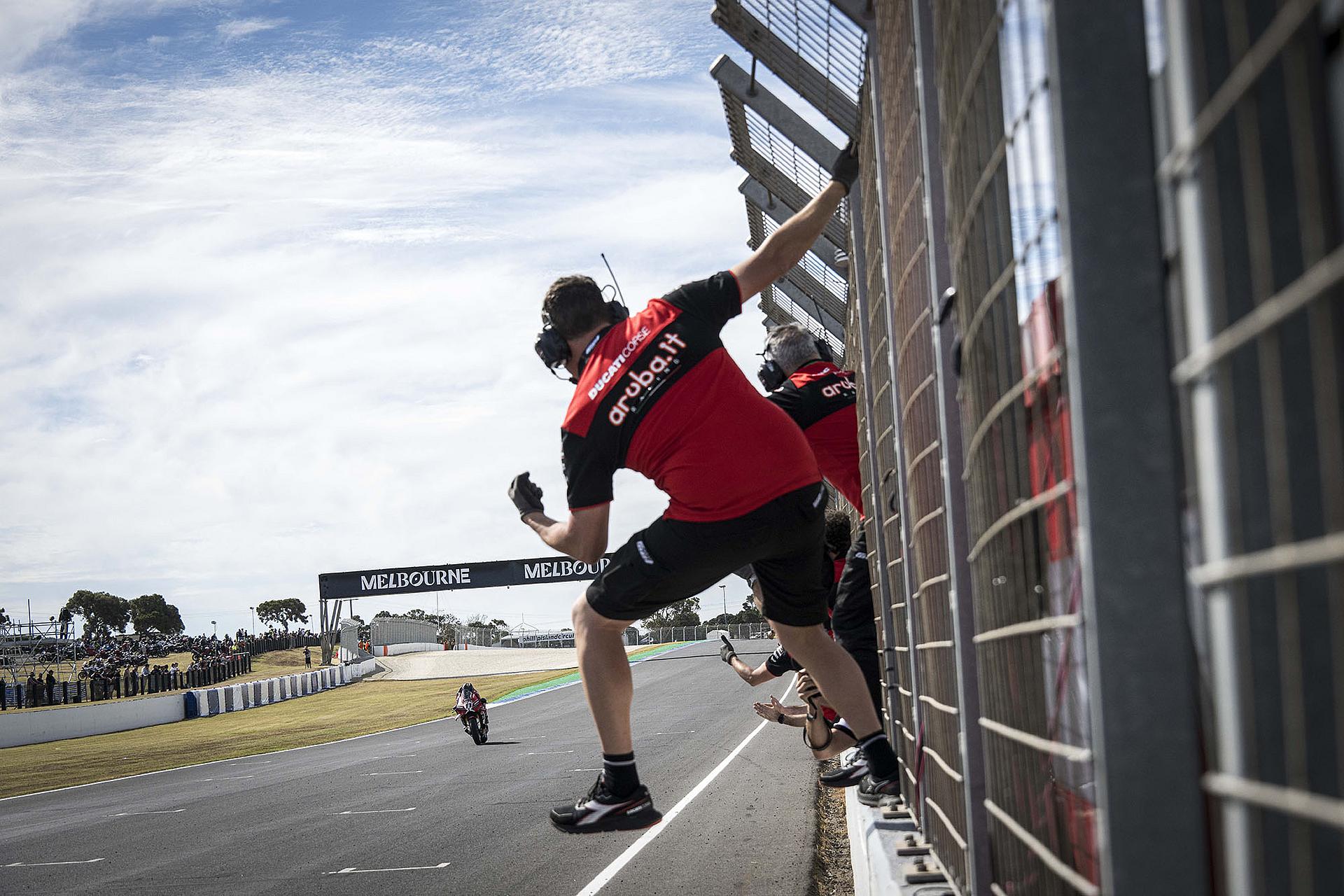 Der Samstag auf Phillip Island war für das Team Aruba.it Racing – Ducati mit dem Sieg von Nicolò Bulega und dem sechsten Platz von Iker Lecuona voller Spannung. Bulega holte sich zunächst seine zehnte Superbike-Poleposition und sicherte sich dann den 450. Sieg für Ducati in dieser Kategorie. Bulega führte das Rennen von Anfang bis Ende an und bestätigte damit sein außergewöhnliches Gespür für die australische Rennstrecke, auf der er schon im vergangenen Jahr einen fantastischen Hattrick erzielte. Lecuona fand in der Superpole nicht die richtigen Bedingungen, um seine beste Leistung zu zeigen, und musste daher von Platz 13 starten. Der spanische Fahrer lieferte jedoch ein äußerst solides Rennen und belegte den sechsten Platz.