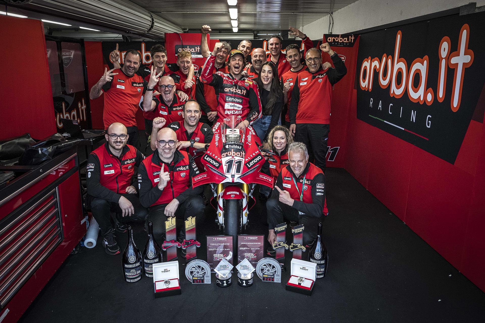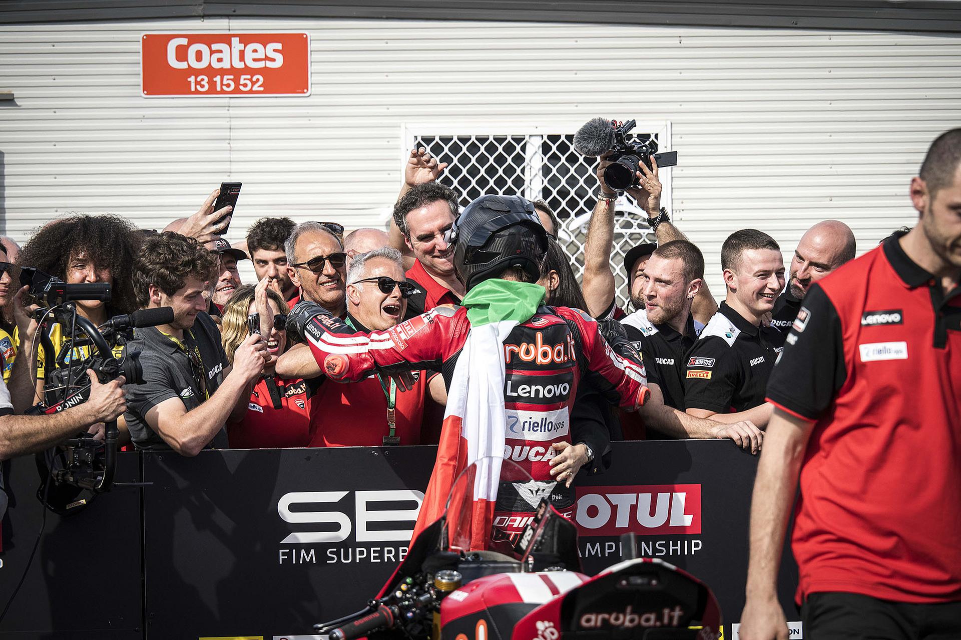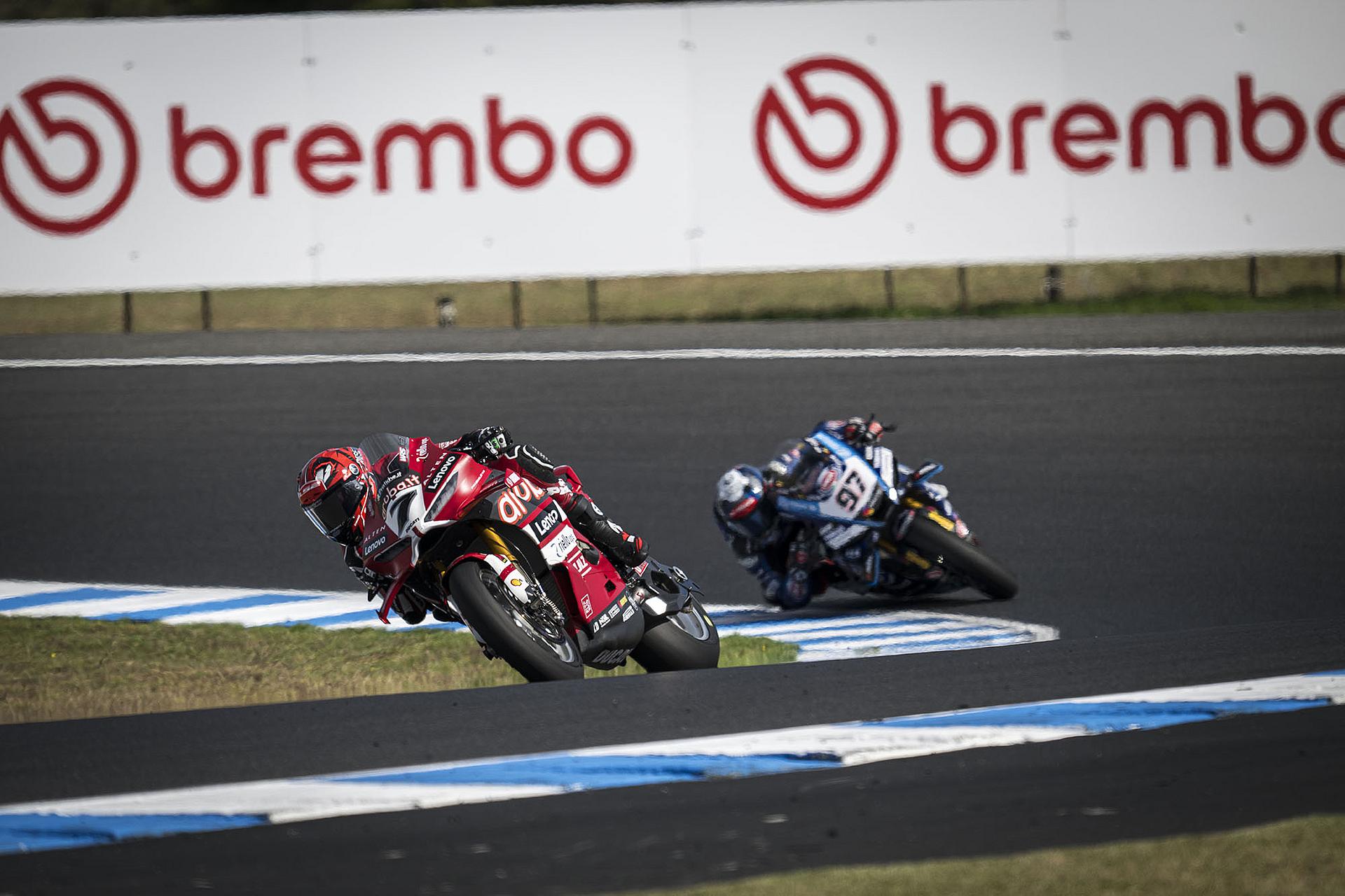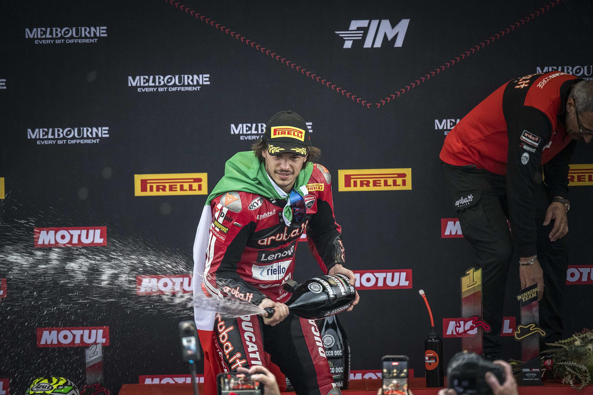 Der Samstag auf Phillip Island war für das Team Aruba.it Racing – Ducati mit dem Sieg von Nicolò Bulega und dem sechsten Platz von Iker Lecuona voller Spannung. Bulega holte sich zunächst seine zehnte Superbike-Poleposition und sicherte sich dann den 450. Sieg für Ducati in dieser Kategorie. Bulega führte das Rennen von Anfang bis Ende an und bestätigte damit sein außergewöhnliches Gespür für die australische Rennstrecke, auf der er schon im vergangenen Jahr einen fantastischen Hattrick erzielte. Lecuona fand in der Superpole nicht die richtigen Bedingungen, um seine beste Leistung zu zeigen, und musste daher von Platz 13 starten. Der spanische Fahrer lieferte jedoch ein äußerst solides Rennen und belegte den sechsten Platz.