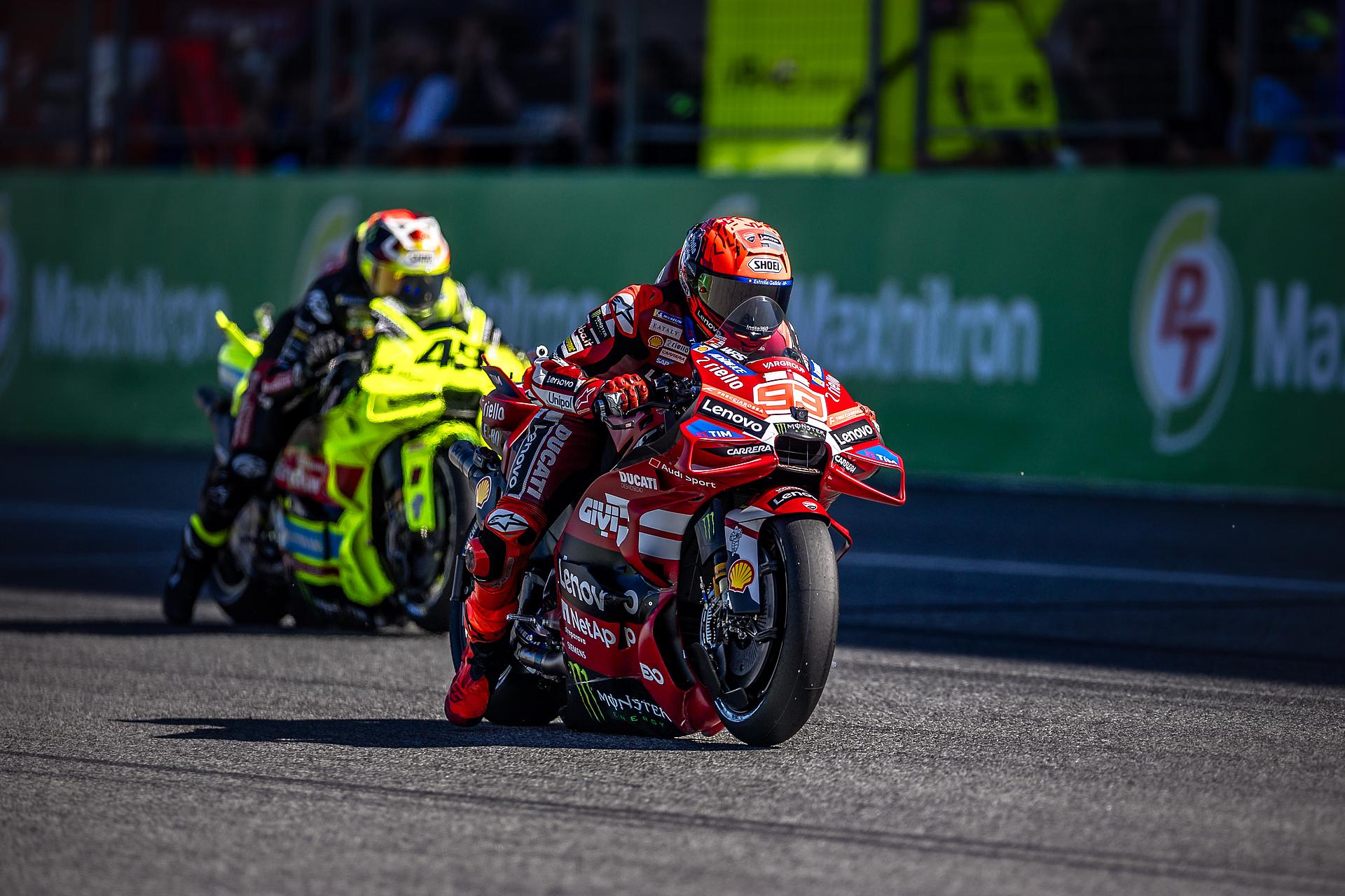 Beim Grand Prix am Sonntag musste Marc Márquez das Rennen im Kampf um das Podium nach einem Schaden am Hinterrad aufgeben. Francesco Bagnaia kam wie im Sprint auf Platz 9 ins Ziel. Bagnaia machte in den ersten beiden Runden vier Positionen gut, bevor er sich in der Schlussphase auf den siebten Platz vorarbeitete und schließlich das Rennen als Neunter beendete. Nach einem guten Start aus der ersten Startreihe kämpfte Márquez bis zur 21. Runde um das Podium, bis ein Schlag auf einem Curb zu einem Schaden der Hinterradfelge führte, wodurch der Reifen Druck verlor.