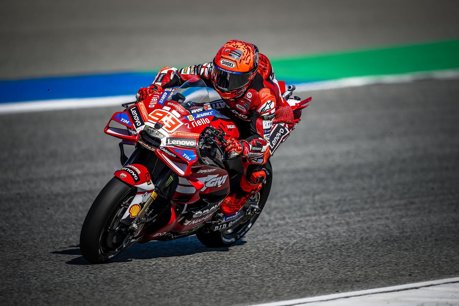 Es war ein schwieriges Qualifying für Pecco Bagnaia am Samstag. Er lag zunächst auf Platz 3, konnte sich aber trotz mehrerer Versuche nicht verbessern. Ein Fehler am Ausgang von Kurve 8 – nur 0,001 Sekunden hinter der Bestzeit – und ein abgebrochener letzter Versuch bedeuteten am Ende, dass er sowohl den Sprint als auch das Rennen von Platz 13 aus starten muss. In Qualifying 2 lag Marc Marquez zwischenzeitlich nur auf Platz 7. In den letzten Minuten zeigte er jedoch eine starke Schlussattacke mit drei roten Sektoren und sicherte sich noch den zweiten Startplatz – nur 0,035 Sekunden hinter Polesitter Bezzecchi.