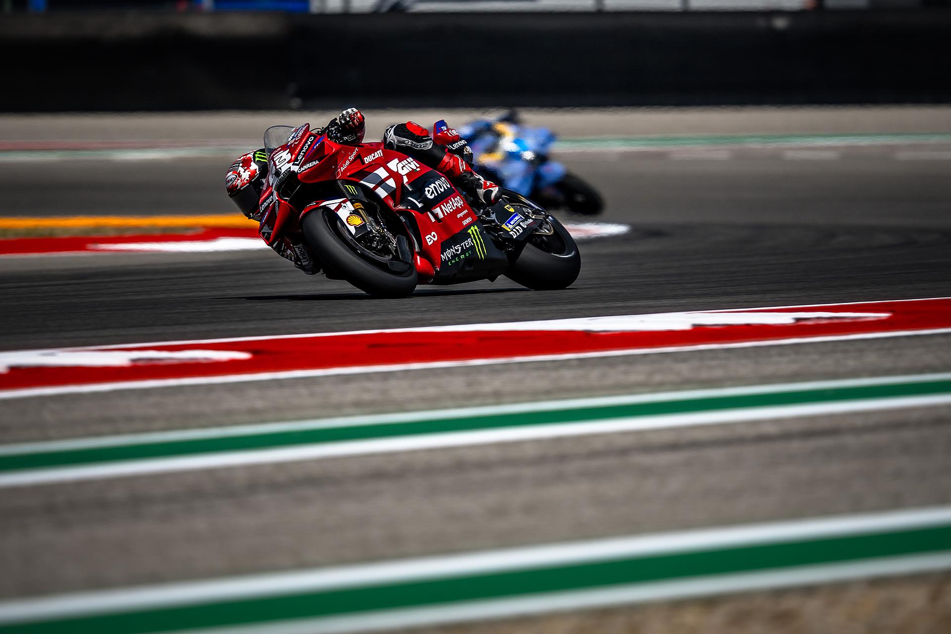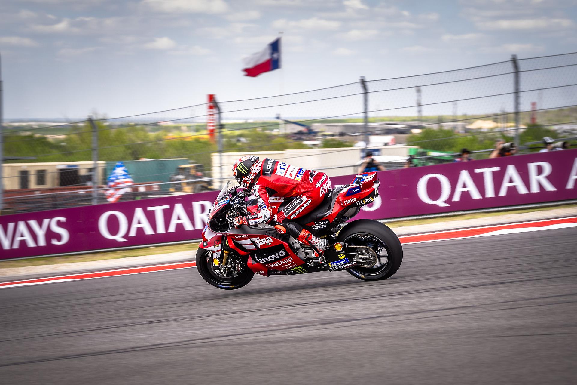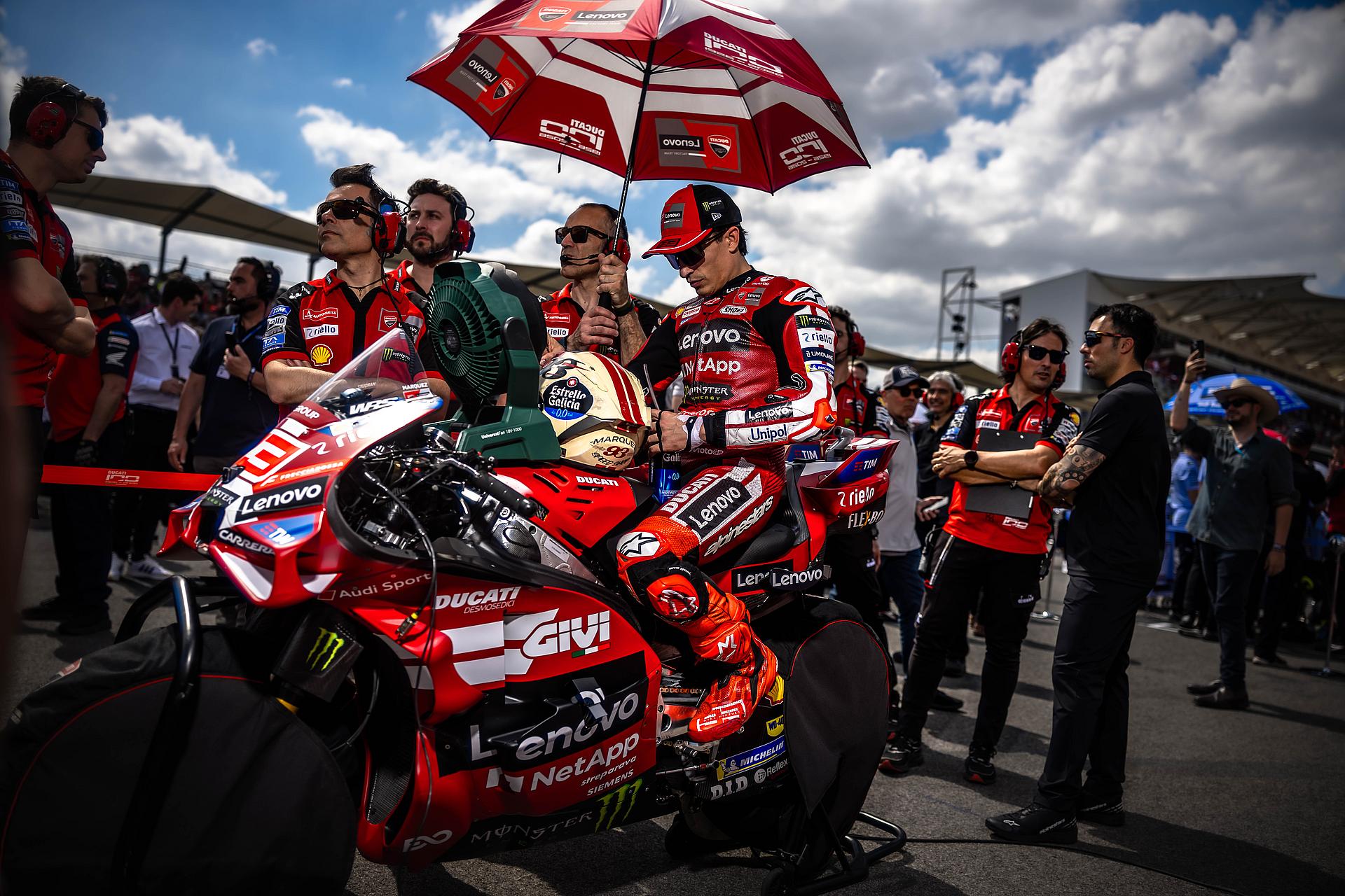Das Ducati Lenovo Team blickt auf ein arbeitsreiches Wochenende am Circuit of The Americas zurück. Marc Márquez sicherte sich die Bestzeit im Training am Freitag und bewies damit erneut seine außergewöhnliche Stärke auf dem anspruchsvollen Stadtkurs in Austin – einem seiner Lieblingskurse. Francesco Bagnaia zeigte ebenfalls eine solide Vorstellung und beendete die Trainingssession auf Platz acht.