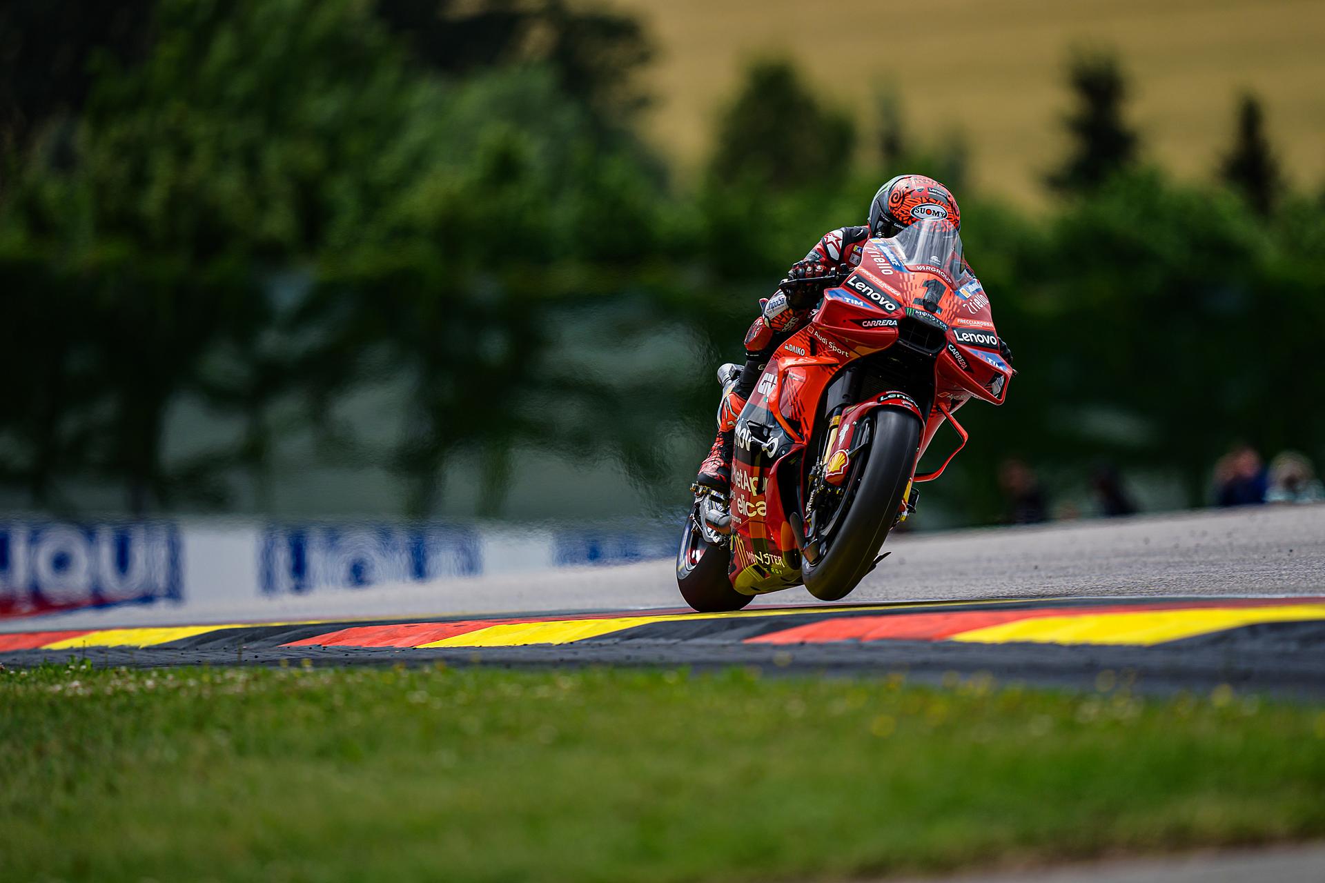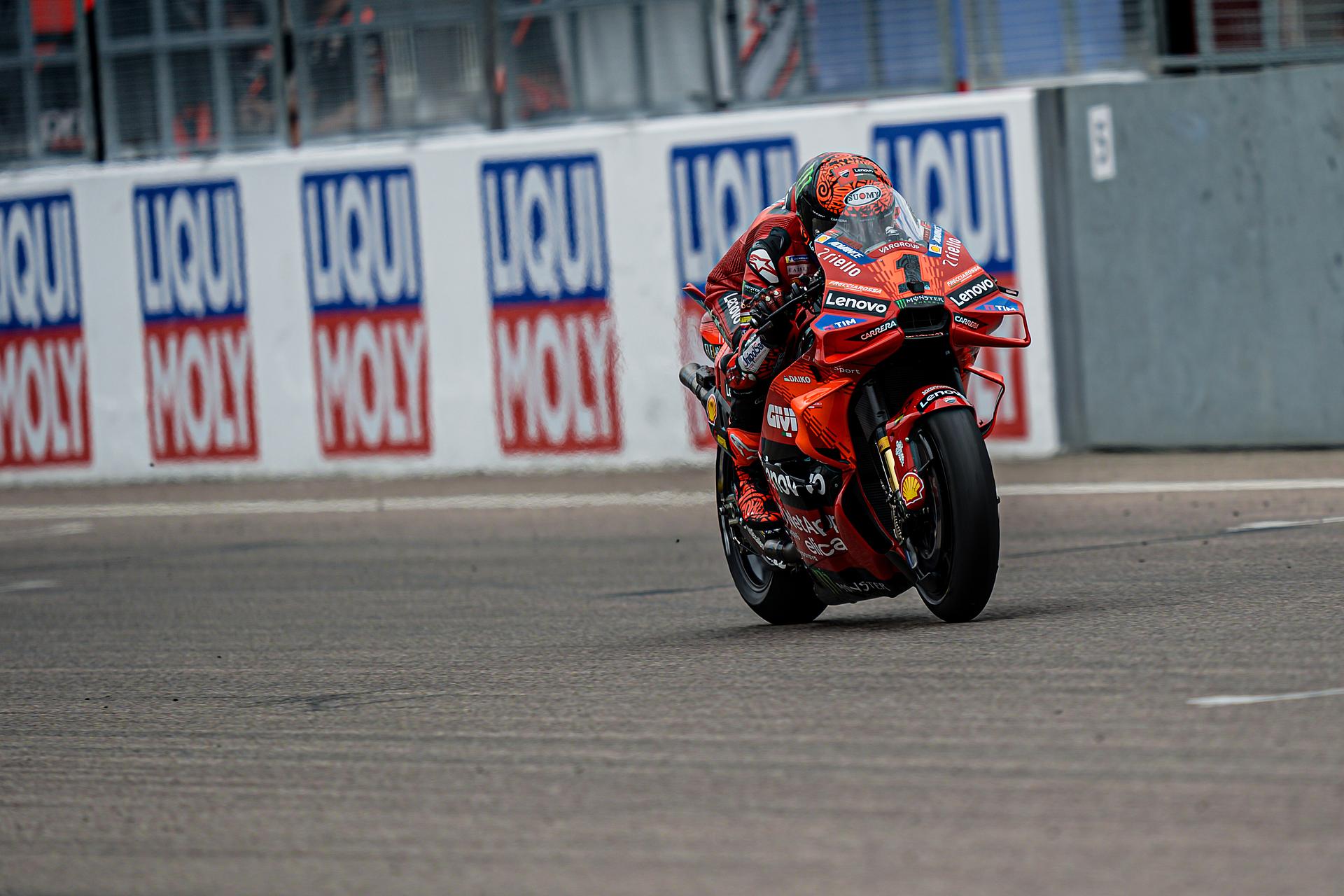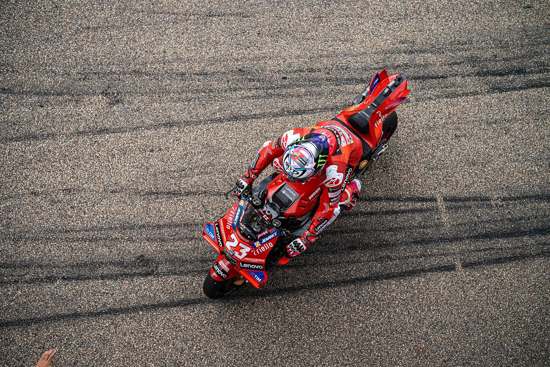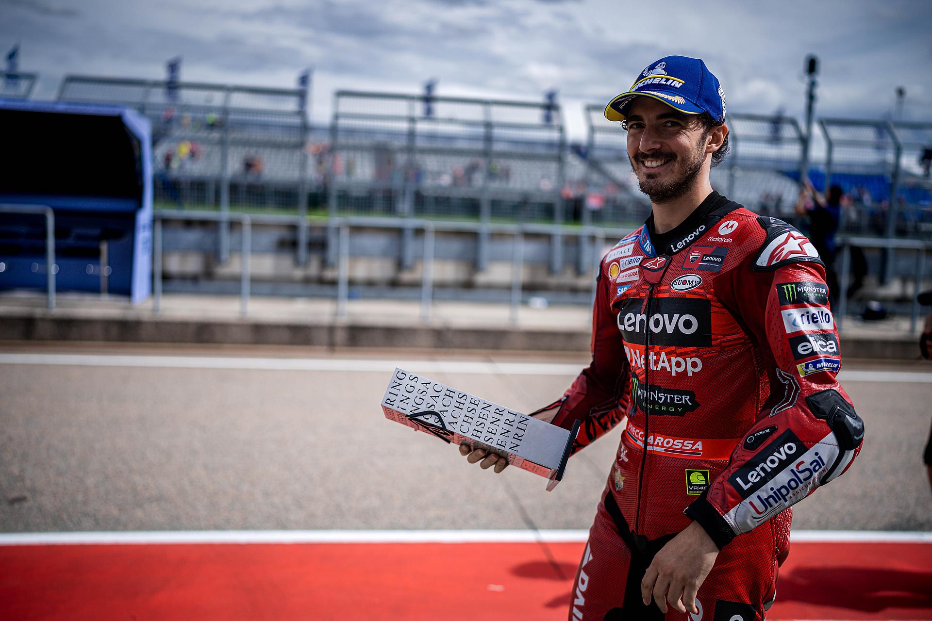 Das Ducati Lenovo Team schaffte es heute dank Francesco Bagnaia, der im 15-Runden-Sprintrennen auf dem Sachsenring als Dritter ins Ziel kam, auf die unterste Stufe des Podiums. Enea Bastianini gelang eine gute Aufholjagd aus der dritten Startreihe und blieb bis zur letzten Runde im Kampf um das Podium.