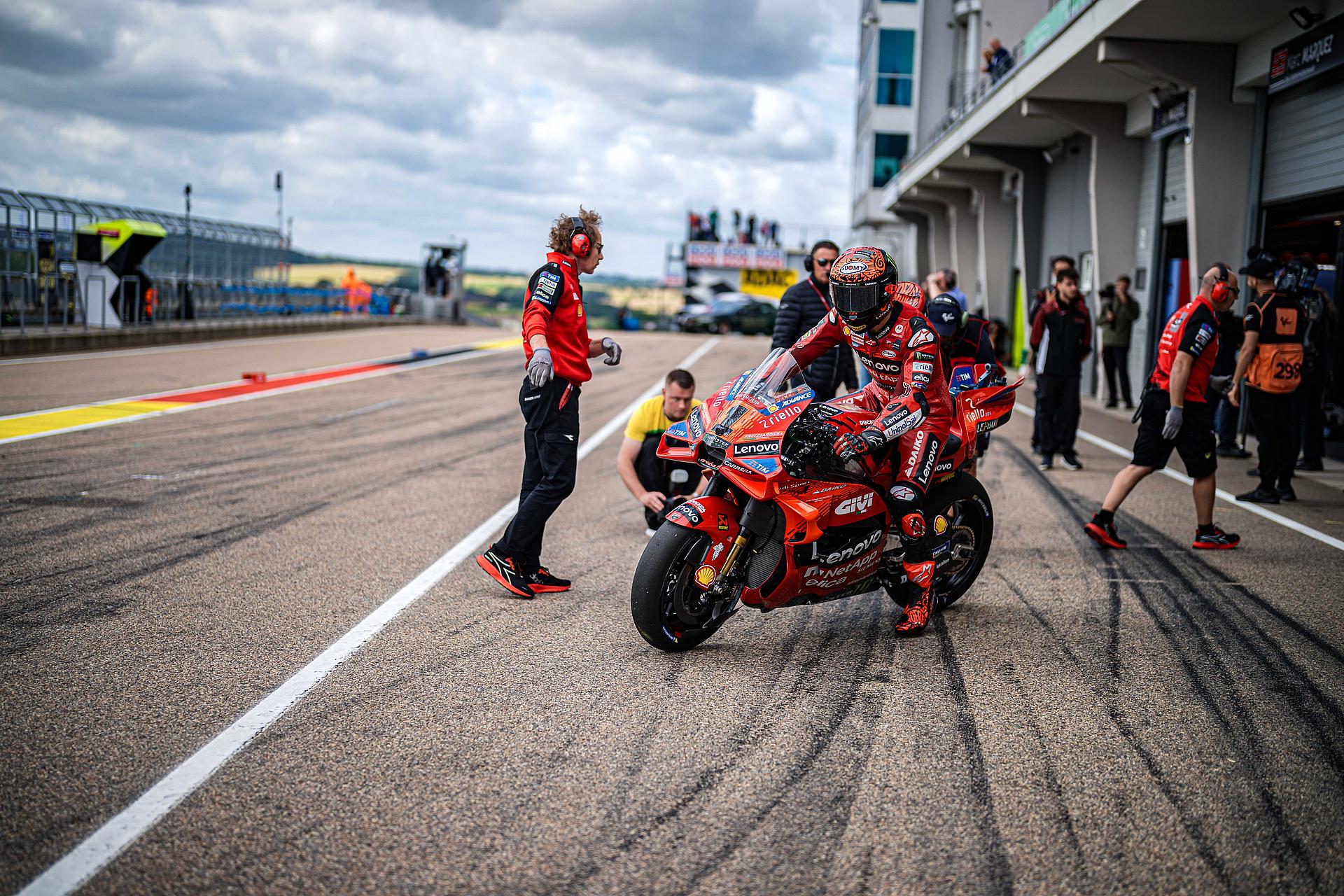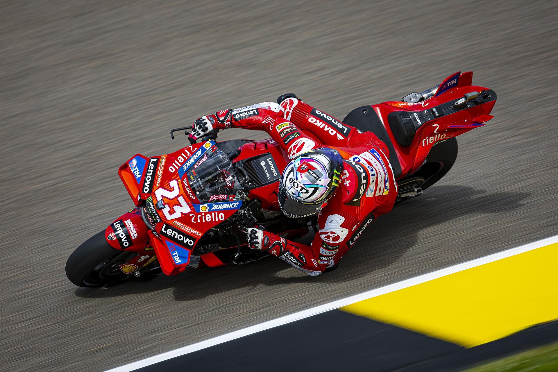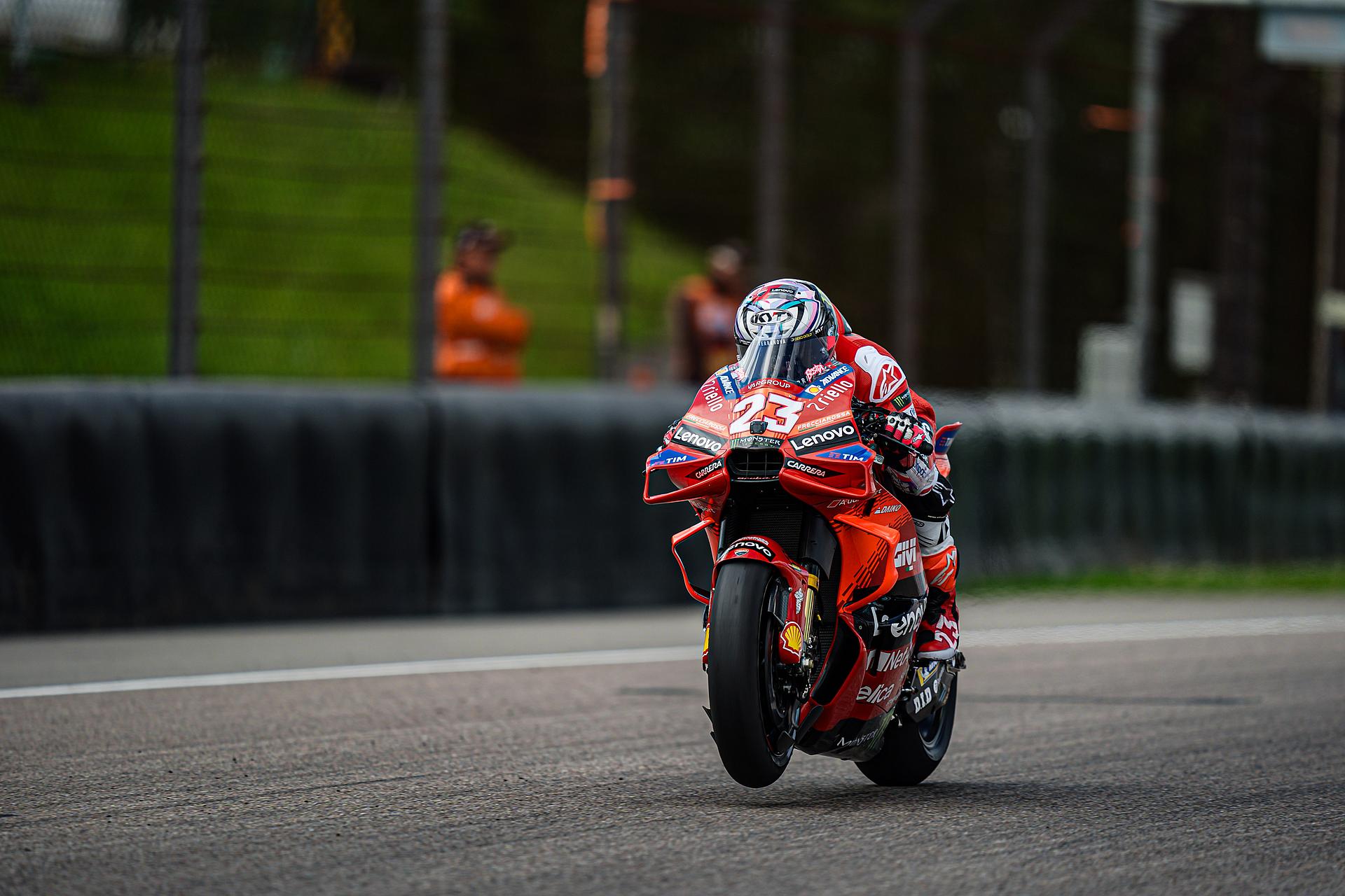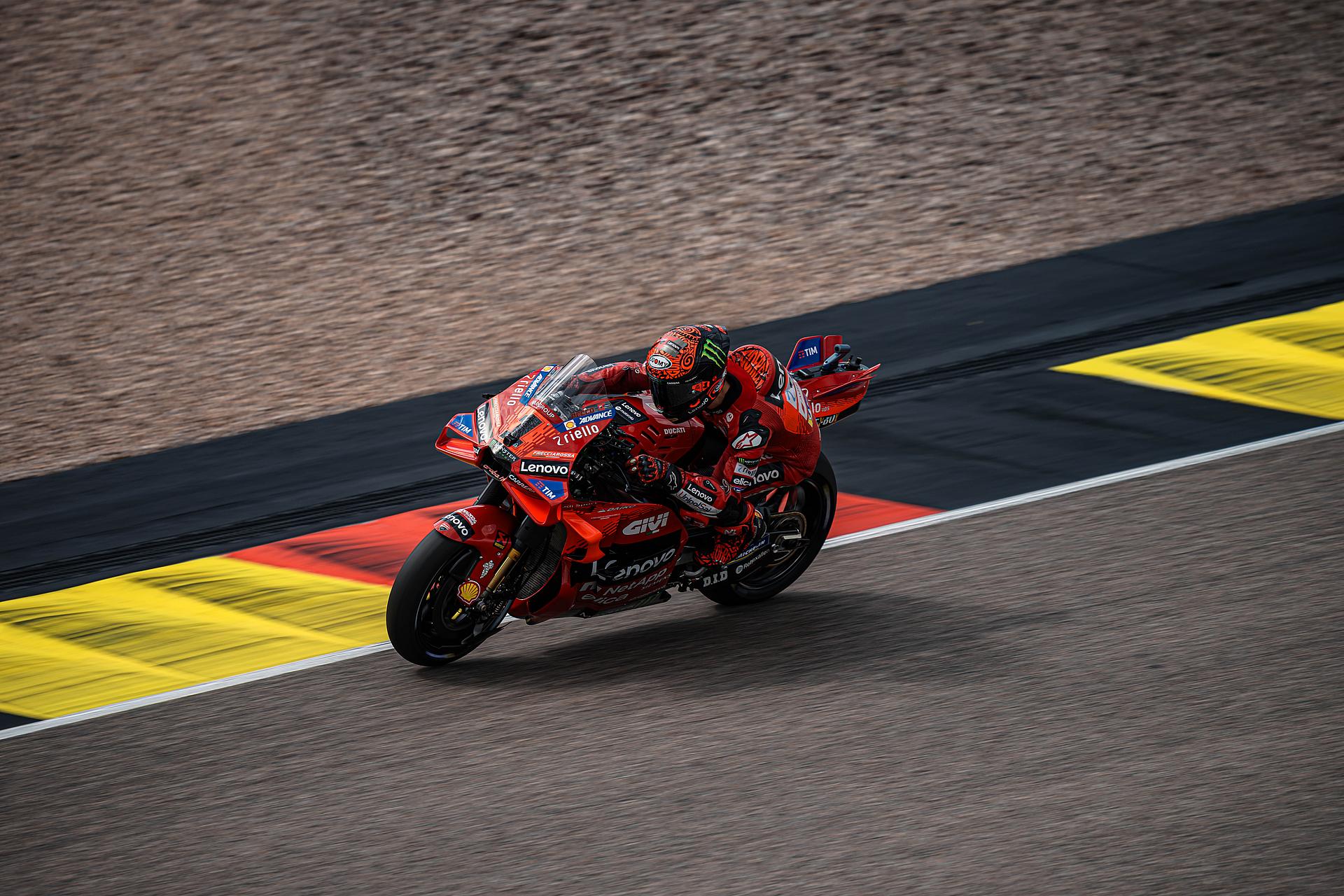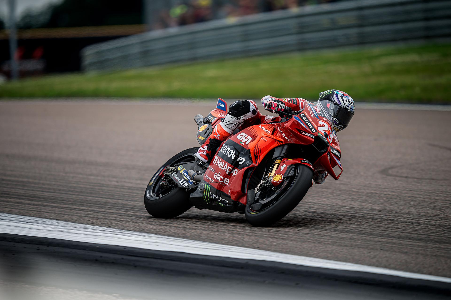 Das Ducati Lenovo Team schaffte es heute dank Francesco Bagnaia, der im 15-Runden-Sprintrennen auf dem Sachsenring als Dritter ins Ziel kam, auf die unterste Stufe des Podiums. Enea Bastianini gelang eine gute Aufholjagd aus der dritten Startreihe und blieb bis zur letzten Runde im Kampf um das Podium.