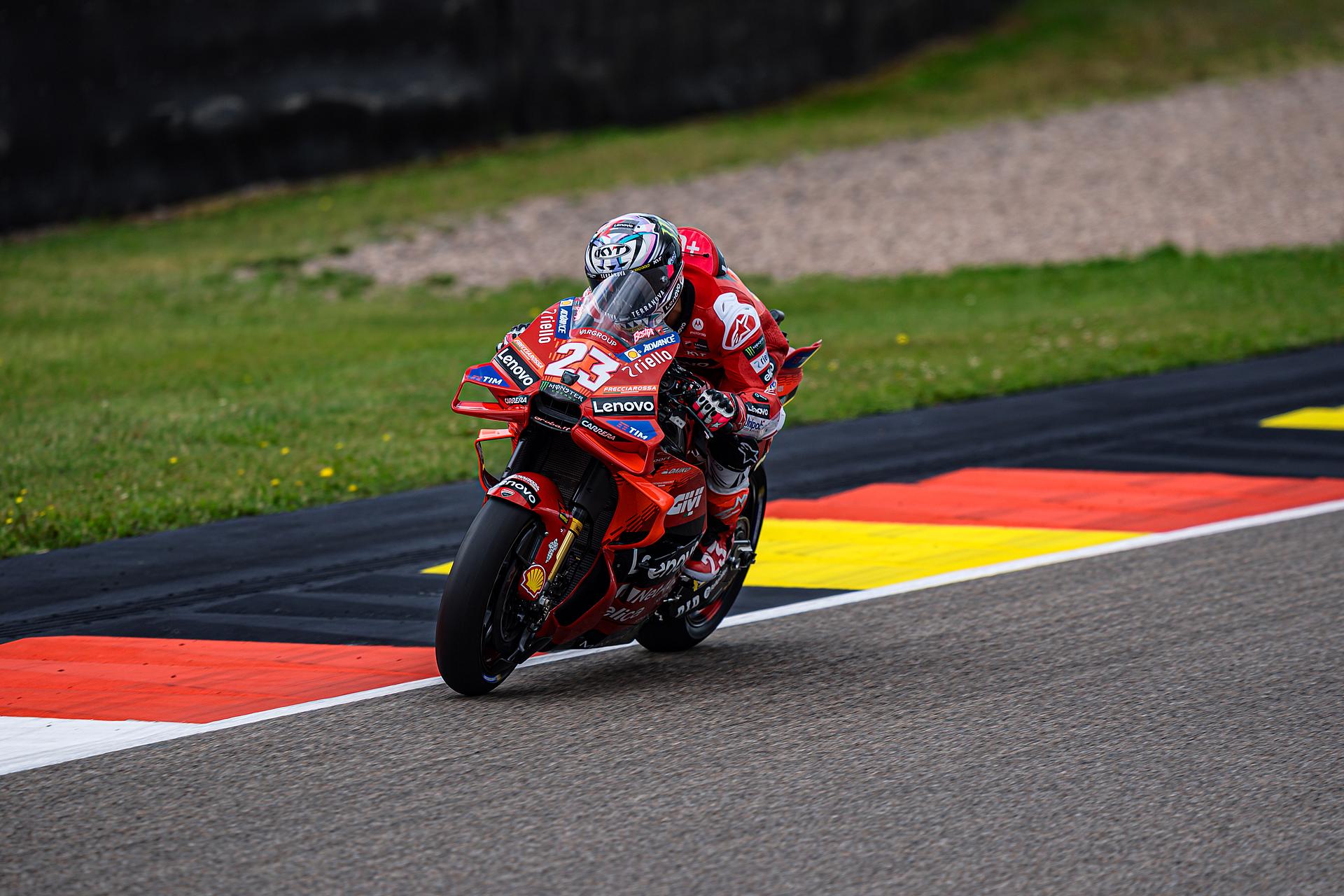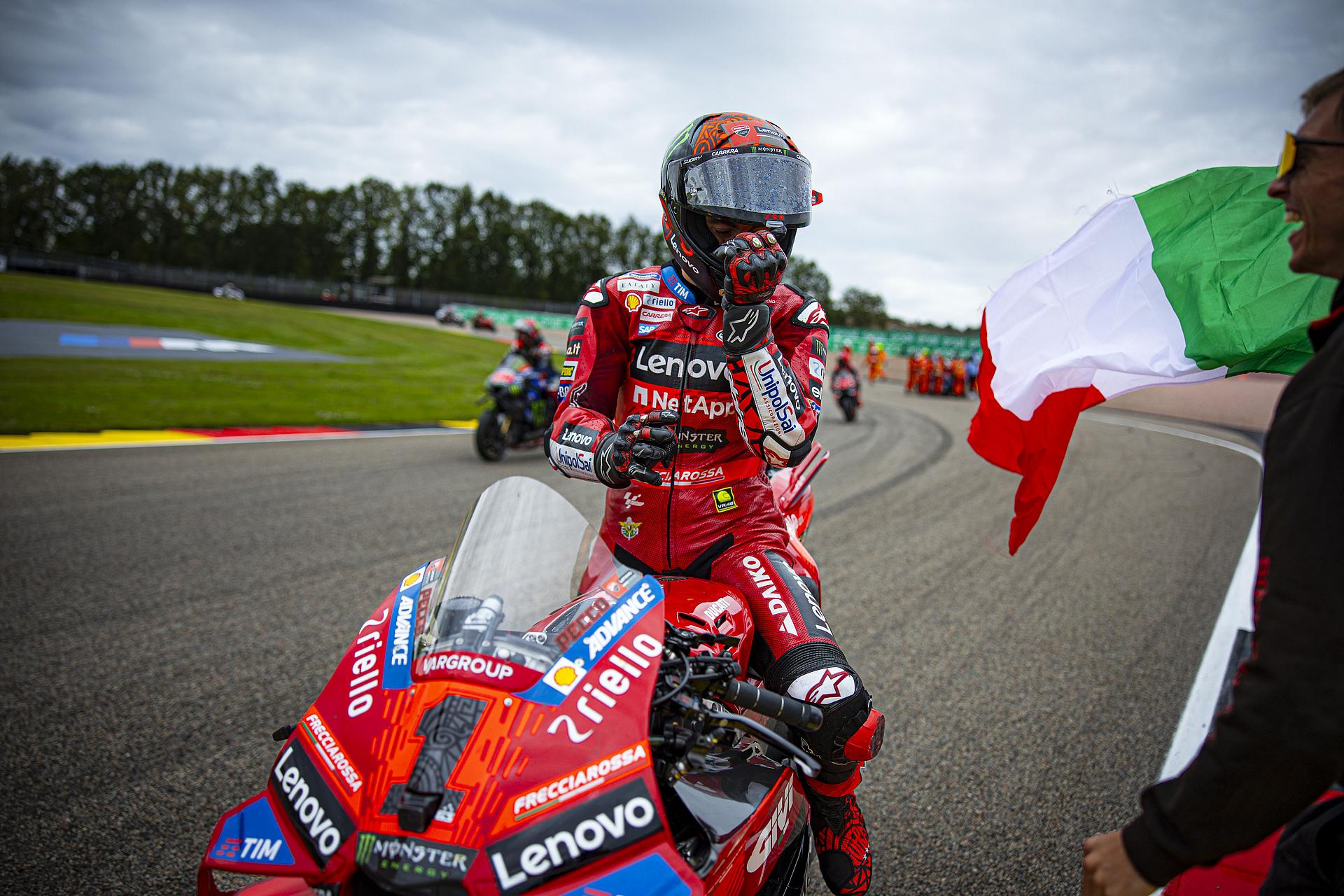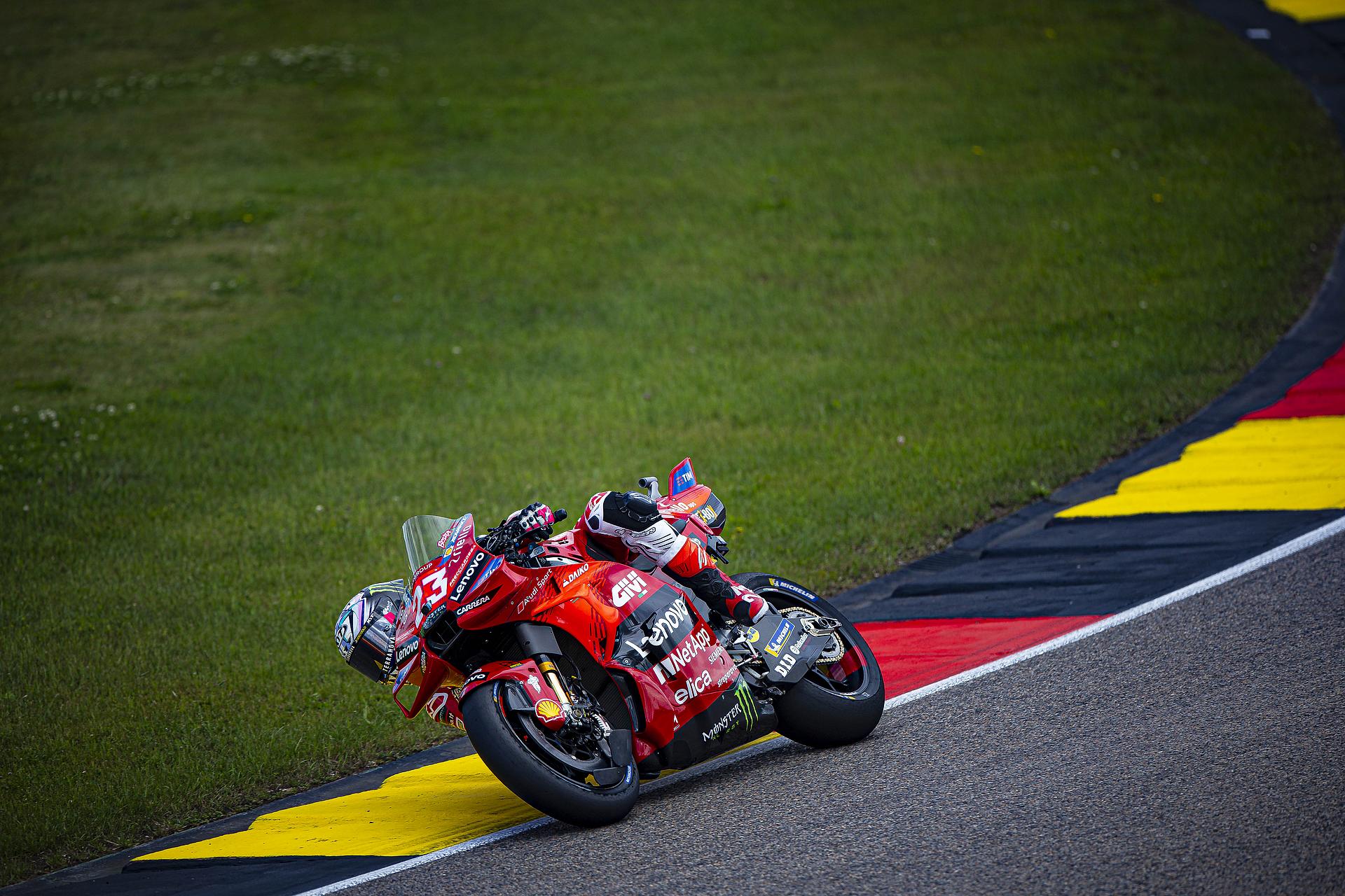 Das Ducati Lenovo Team triumphiert beim Großen Preis von Deutschland mit Francesco Bagnaia, der damit der siegreichste Fahrer in der MotoGP-Geschichte von Ducati wird und gleichzeitig an die Spitze der Meisterschaftswertung zurückkehrt. Vierter Platz für Enea Bastianini nach einem großartigen Kampf mit Morbidelli.