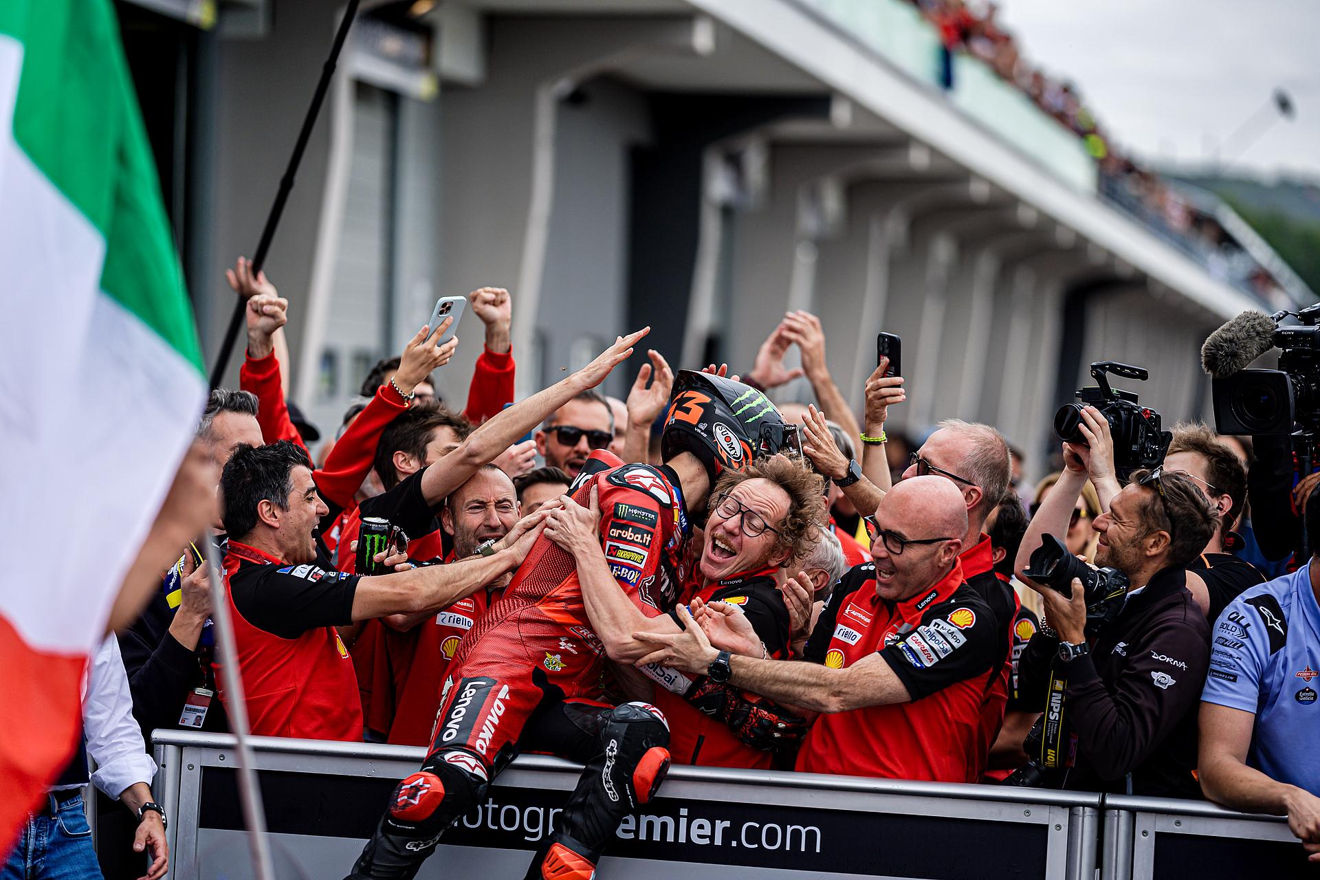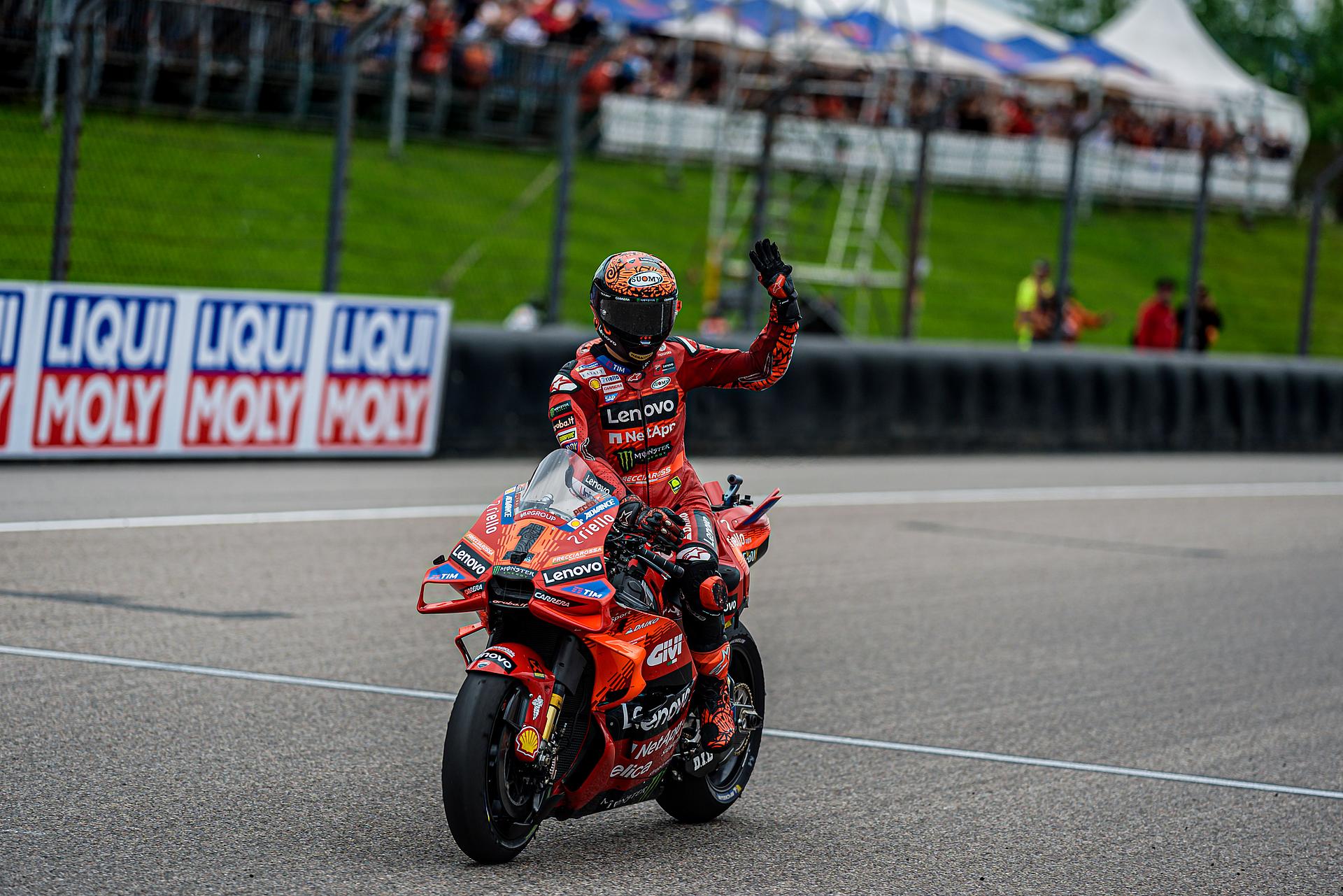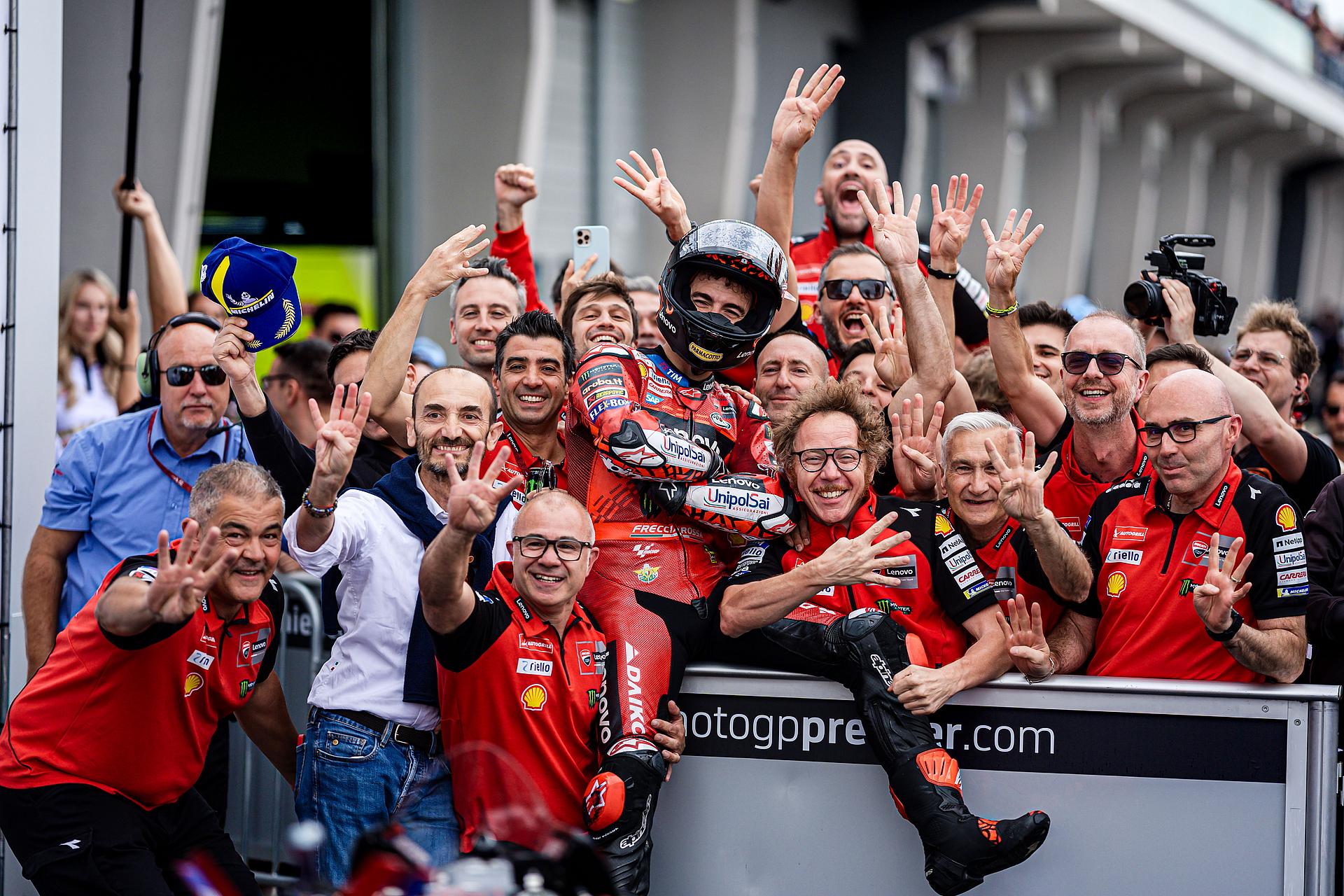 Das Ducati Lenovo Team triumphiert beim Großen Preis von Deutschland mit Francesco Bagnaia, der damit der siegreichste Fahrer in der MotoGP-Geschichte von Ducati wird und gleichzeitig an die Spitze der Meisterschaftswertung zurückkehrt. Vierter Platz für Enea Bastianini nach einem großartigen Kampf mit Morbidelli.