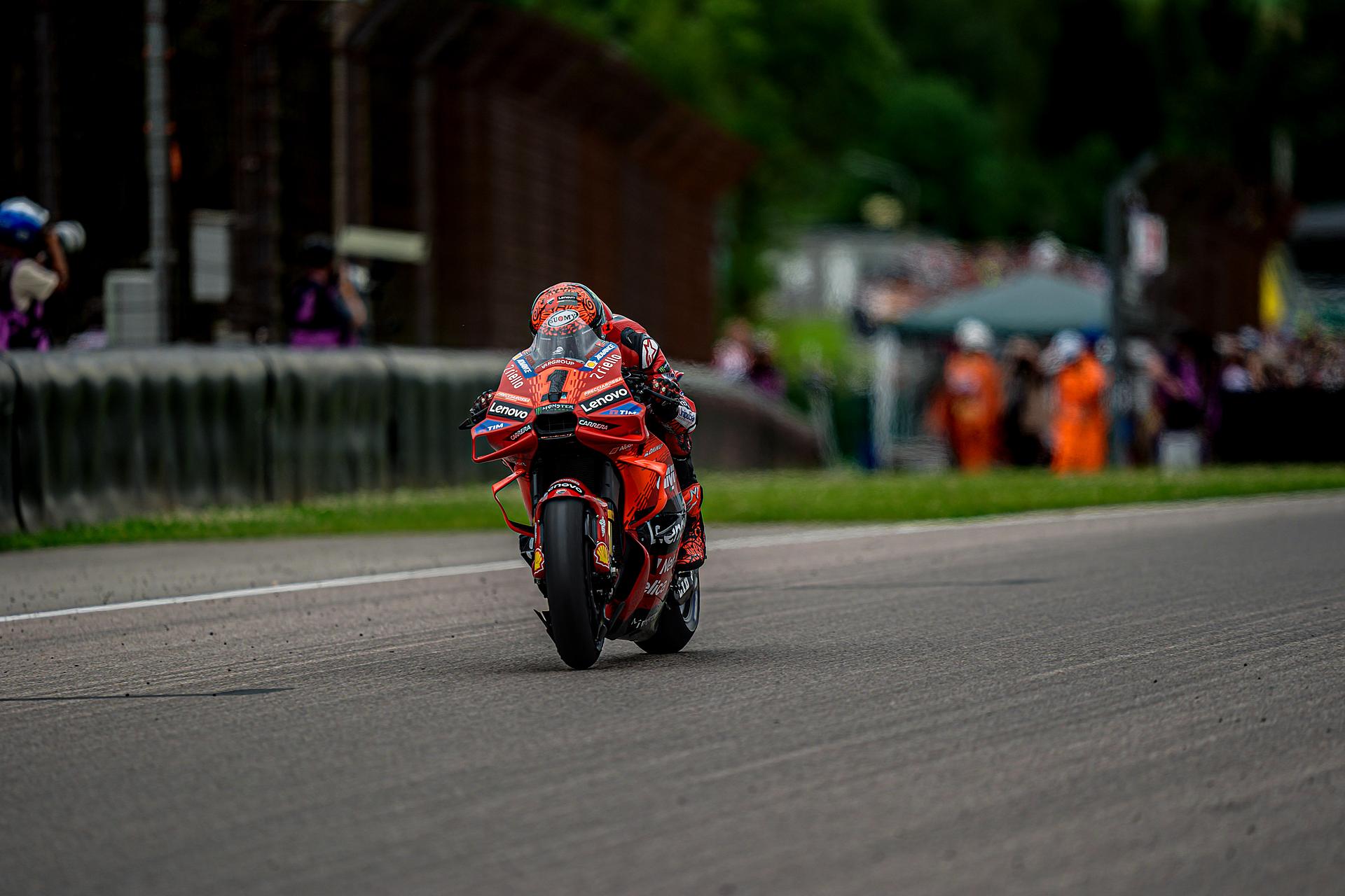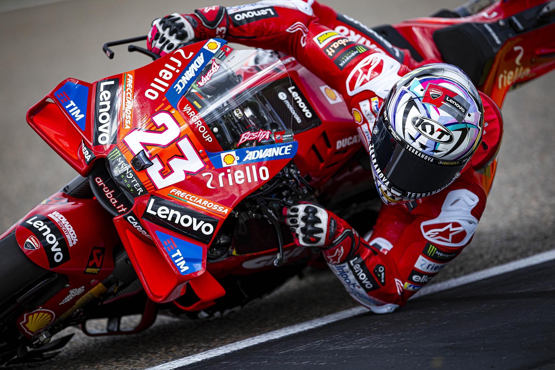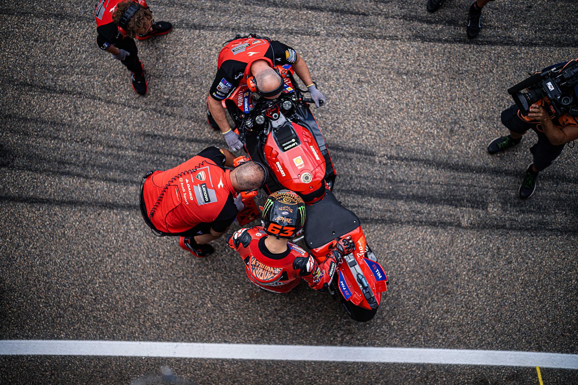 Bagnaia erwischte von Platz vier aus einen perfekten Start und übernahm in der ersten Kurve die Führung. Der amtierende Weltmeister hielt diese Position bis zur vierten Runde, als er in Kurve acht von Martín überholt wurde, wobei Oliveira den Vorteil nutzte und den zweiten Platz übernahm. Pecco versuchte, an seinen Rivalen dranzubleiben, während er ein wenig mit dem Frontgrip seiner Desmosedici GP-Maschine zu kämpfen hatte und schließlich Dritter wurde.