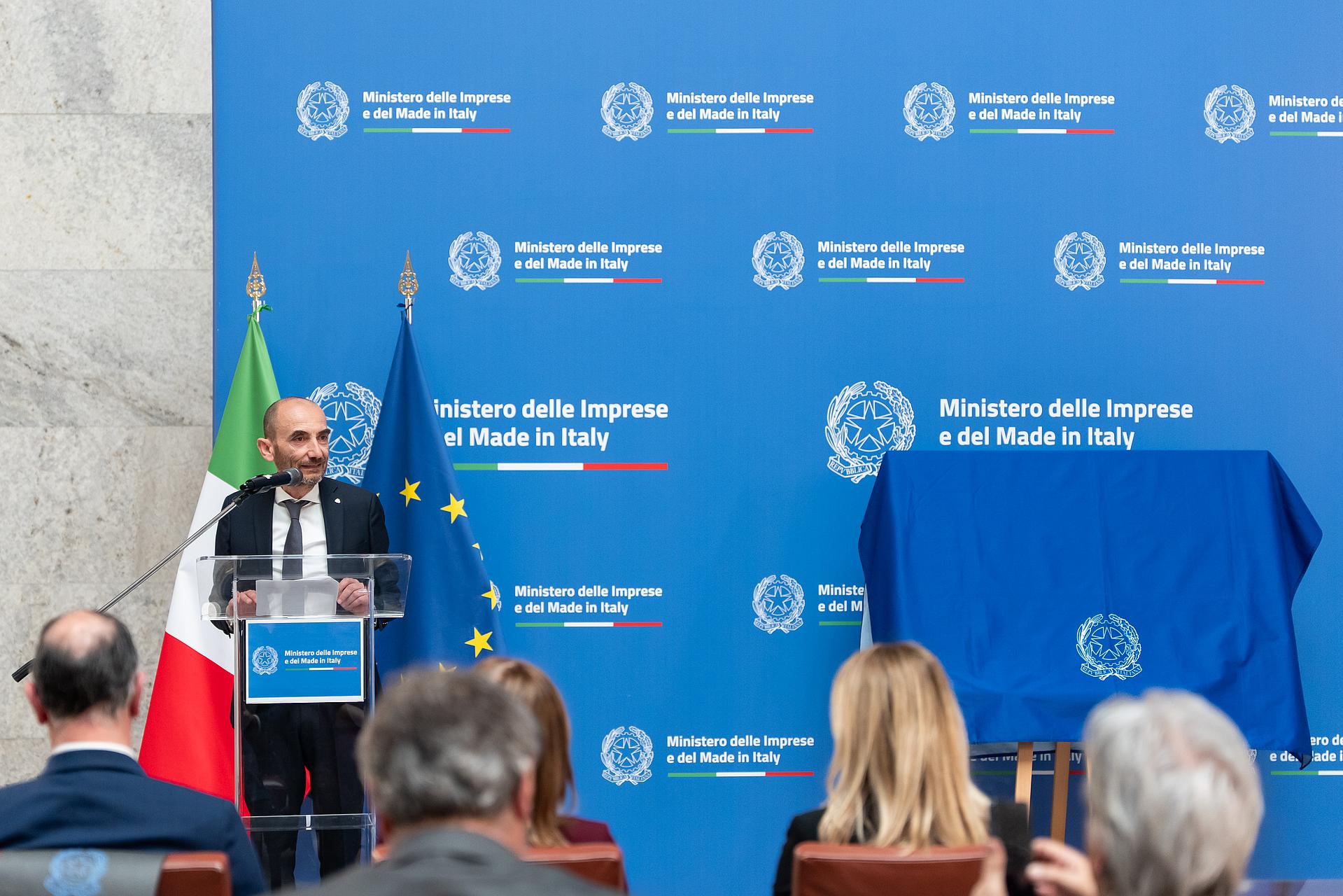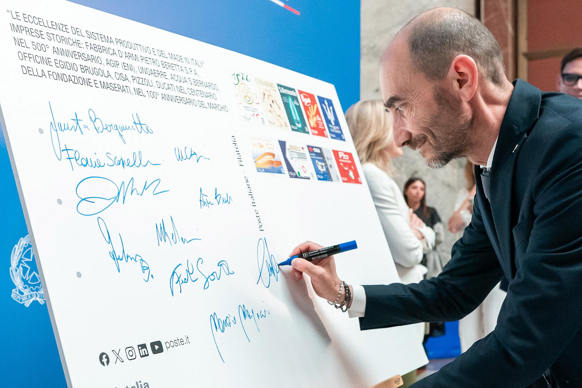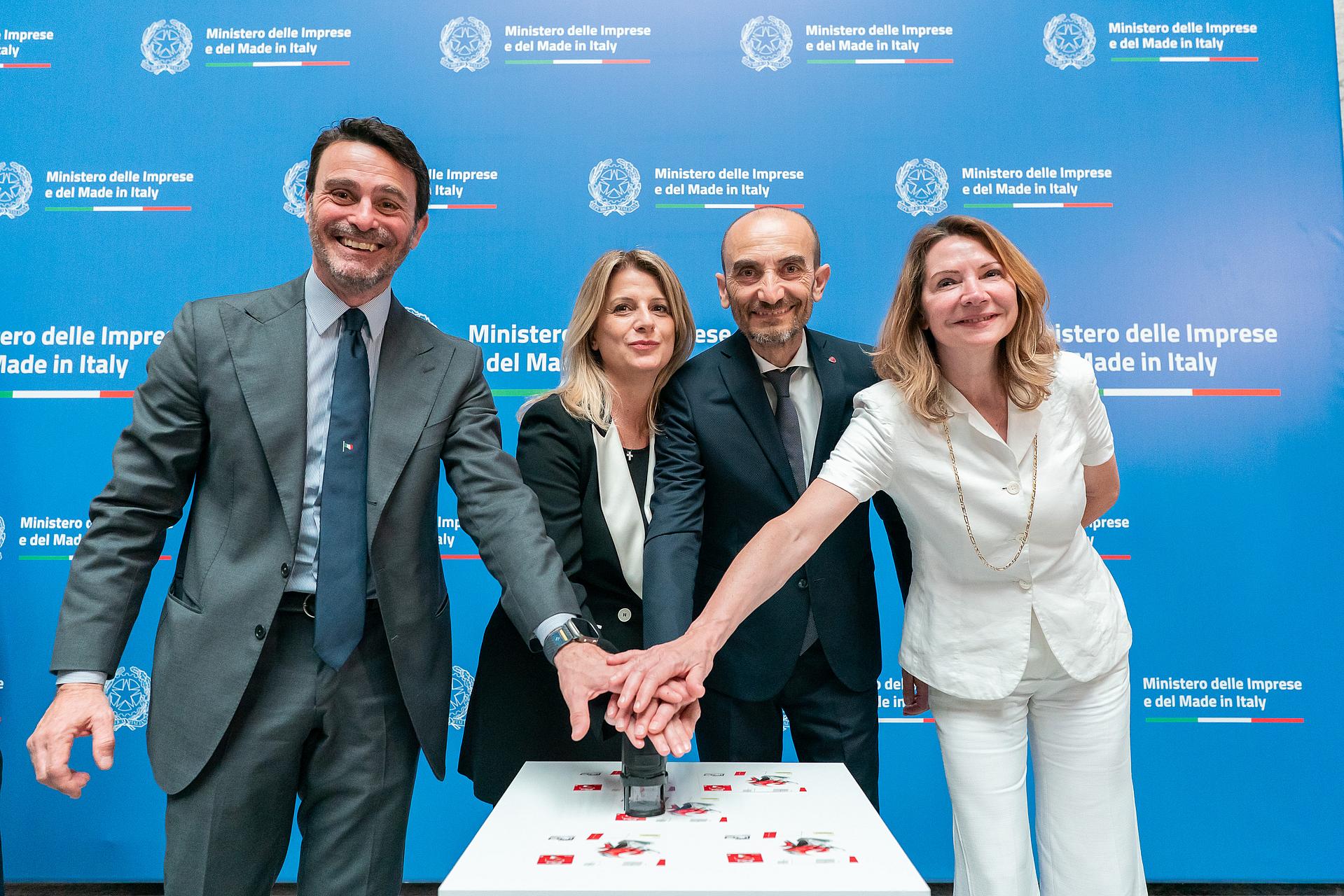 Die offizielle Präsentation fand am Donnerstag, dem 9. April, in der Sala degli Arazzi des Palazzo Piacentini, dem Sitz des Ministeriums für Unternehmen und Made in Italy, in Anwesenheit der Staatssekretärin für Philatelie, Fausta Bergamotto, statt.