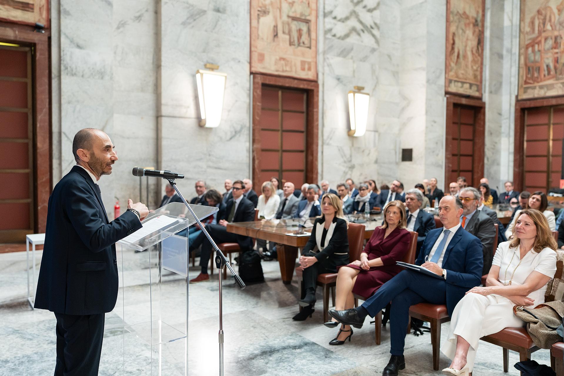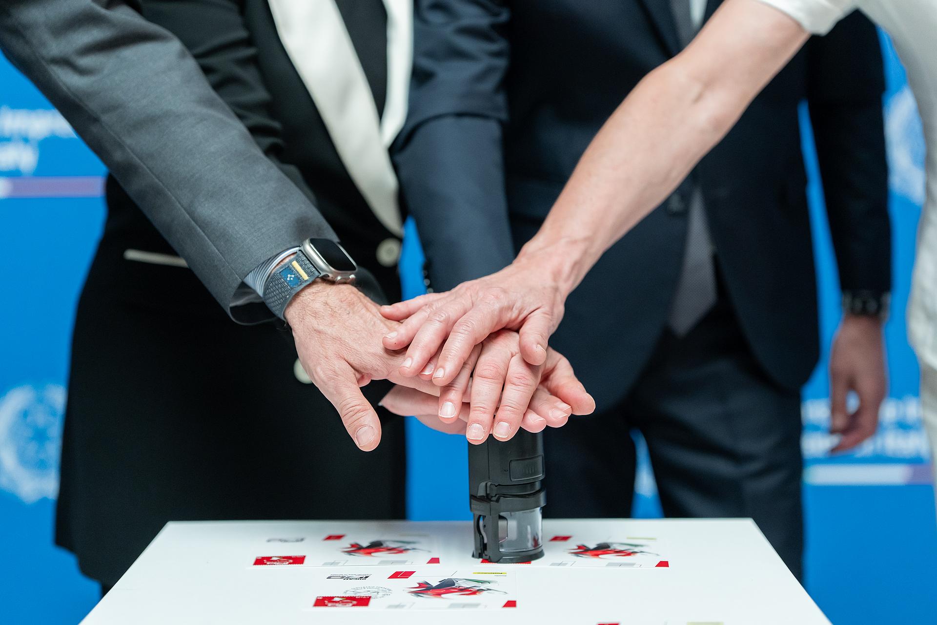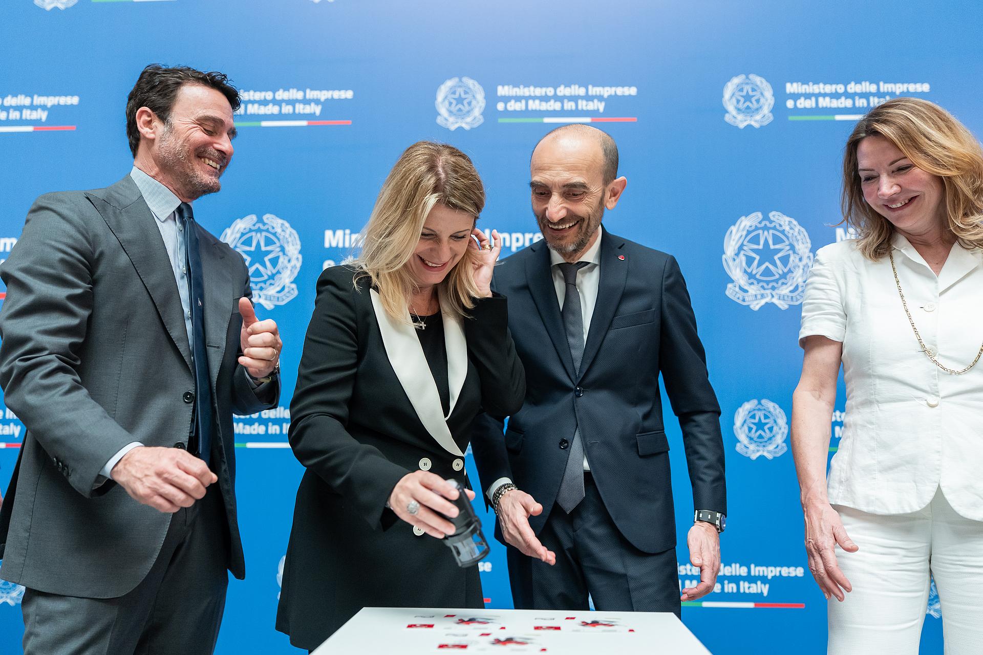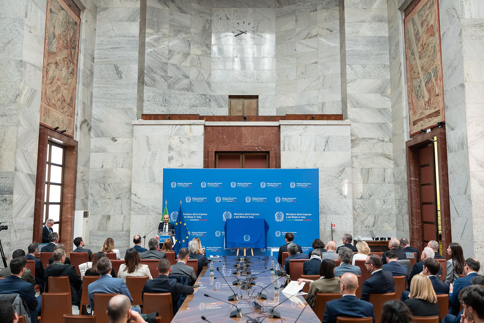 Die offizielle Präsentation fand am Donnerstag, dem 9. April, in der Sala degli Arazzi des Palazzo Piacentini, dem Sitz des Ministeriums für Unternehmen und Made in Italy, in Anwesenheit der Staatssekretärin für Philatelie, Fausta Bergamotto, statt.