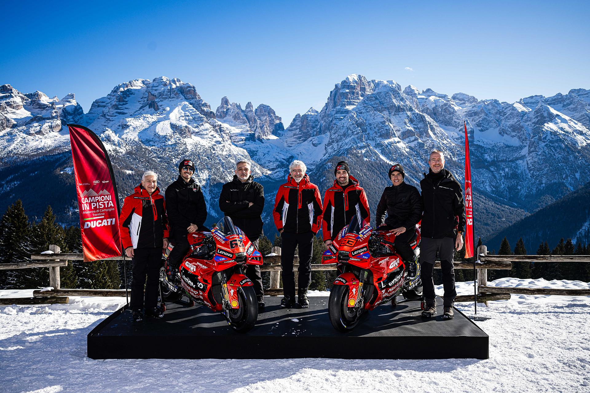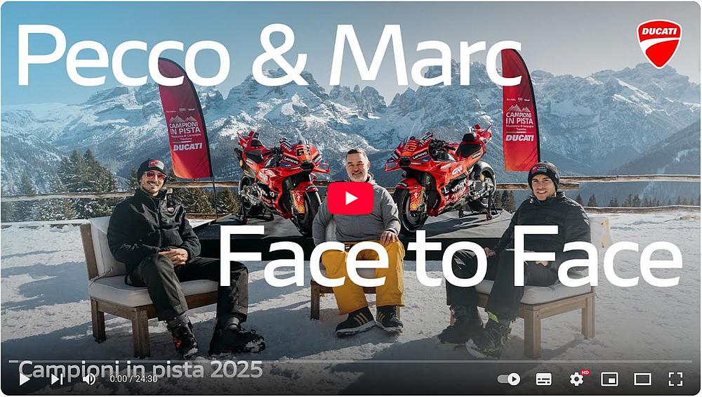 Am Dienstag, den 21. Januar, genossen Bagnaia, Márquez und das gesamte Management von Ducati und Ducati Corse einen wunderbaren Tag auf Skiern und forderten sich gegenseitig in einem spannenden Abfahrtsrennen heraus. Zur Mittagszeit fand das erste „Face to Face“-Interview in einer traumhaften Naturkulisse statt, auf einer Höhe von 1.750 m ü.d.M. im Schnee der Skiarea Madonna di Campiglio Dolomiti di Brenta. Die Fahrer des Ducati Lenovo Teams beantworteten verschiedene Fragen über die kommende Saison und ihre Zukunft als Teamkollegen.