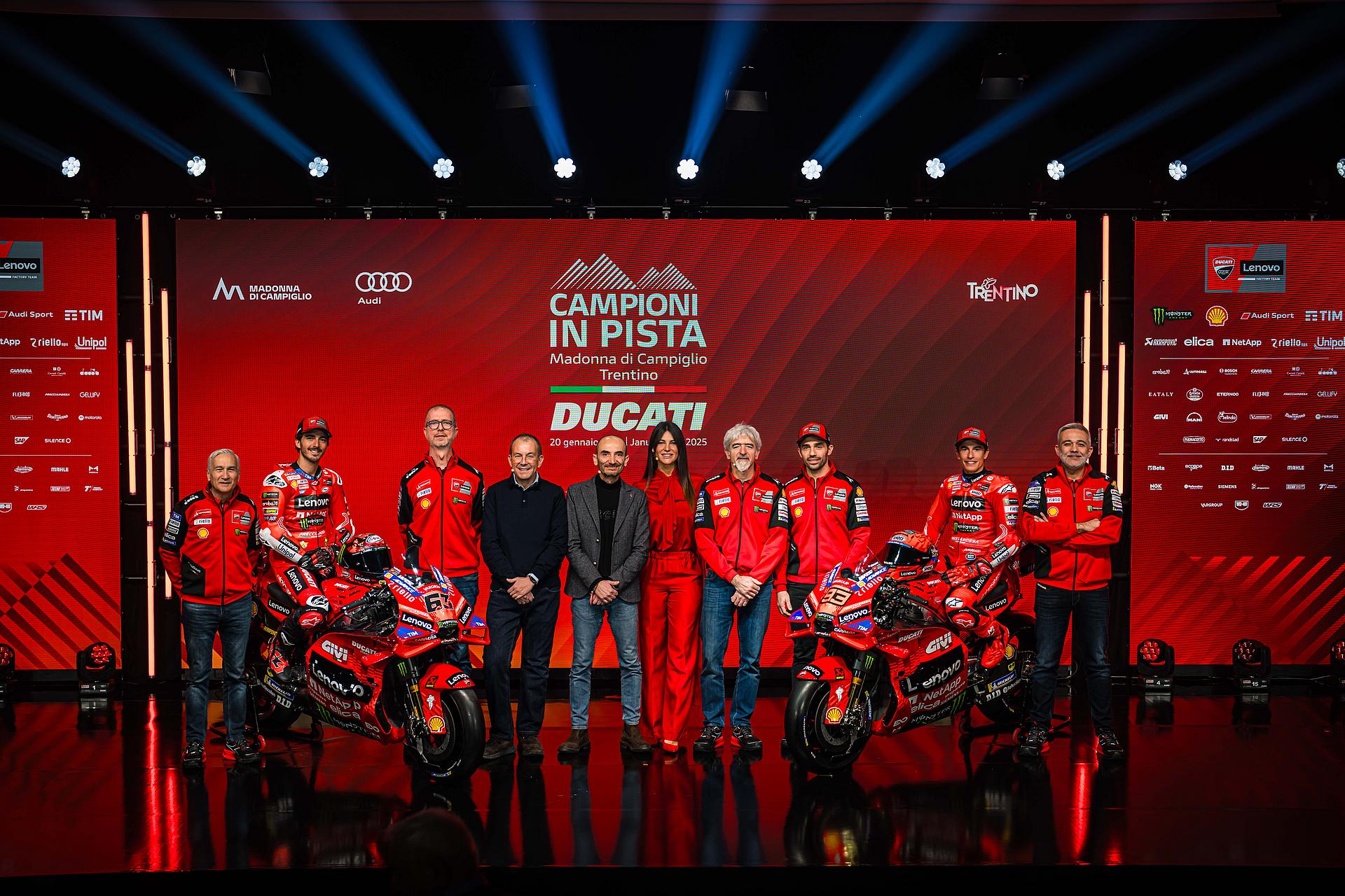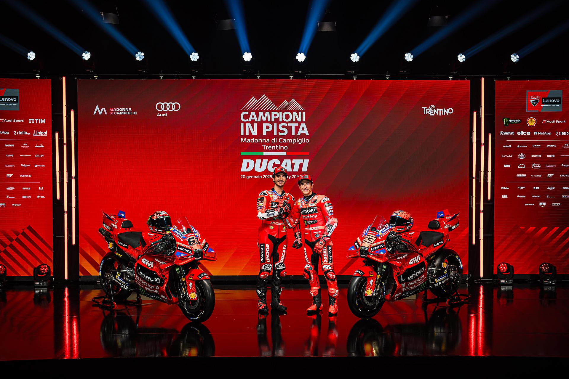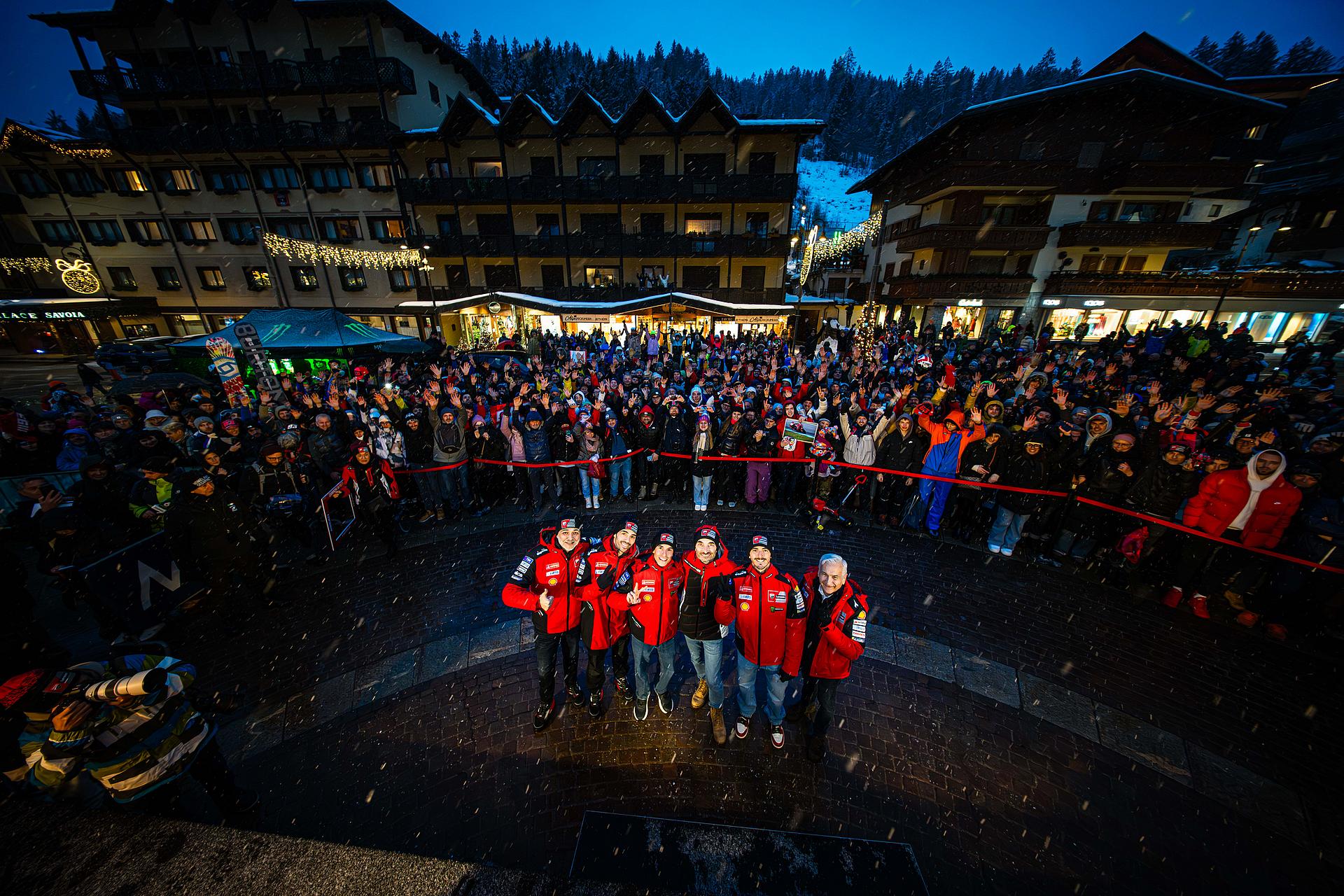 Bagnaia und Márquez waren seit ihrer Ankunft in Madonna di Campiglio am Sonntag, 19. Januar, die unbestrittenen Stars der Veranstaltung. Der erste Termin war die offizielle Präsentation des Teams und der Desmosedici GP25 #63 und #93, die am Morgen des Montag, 20. Januar, auf dem PalaCampiglio mit einem Live-Streaming auf den digitalen Kanälen von Ducati und Live-TV-Übertragung stattfand. Am Nachmittag trafen die beiden Champions in Begleitung des offiziellen Ducati-Testers Michele Pirro, des Ducati-CEO Claudio Domenicali, des Ducati Corse Sporting, Marketing & Communications Director Mauro Grassilli und des Ducati Lenovo Team Managers Davide Tardozzi die Fans, die sich auf der Piazza Sissi versammelt hatten.