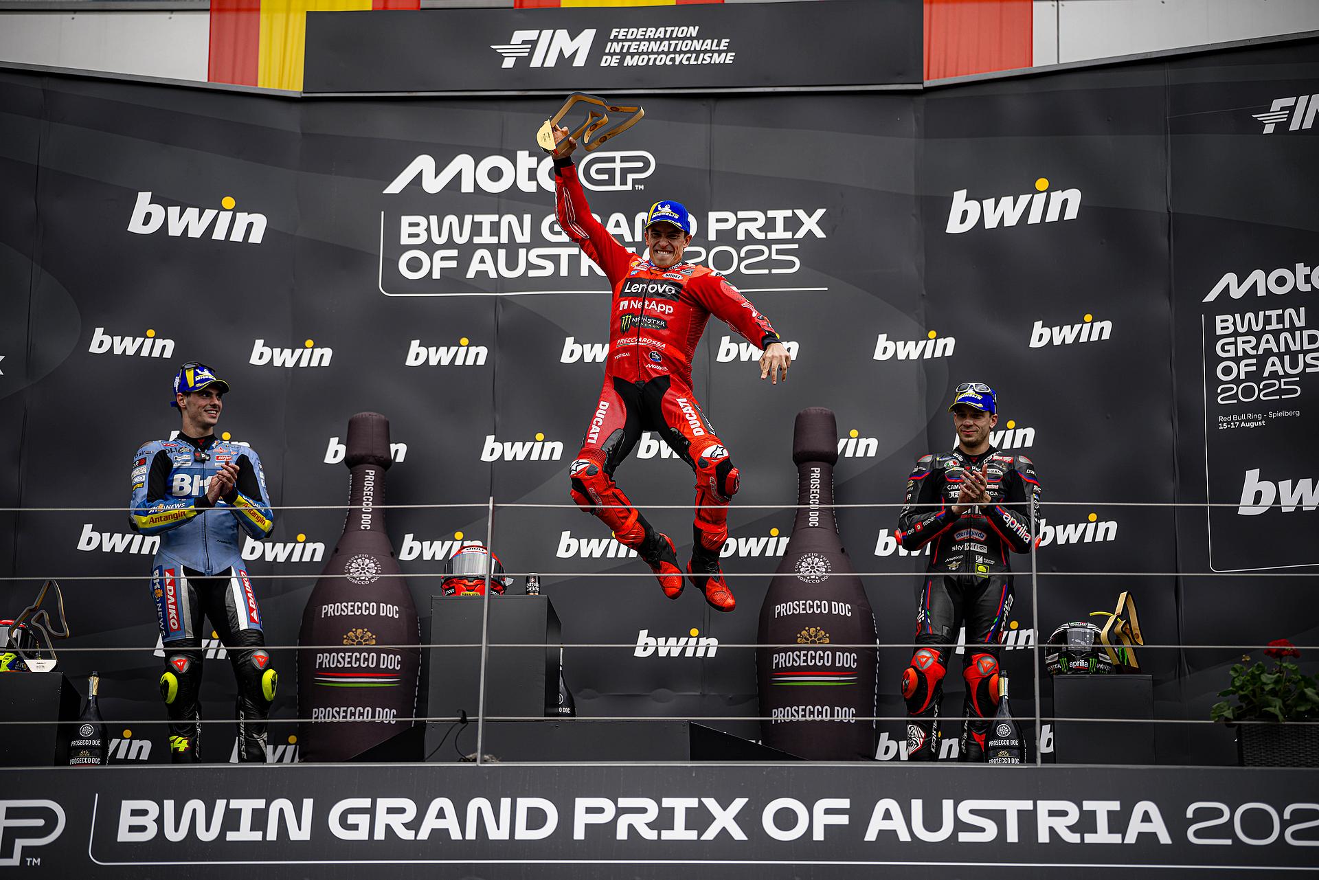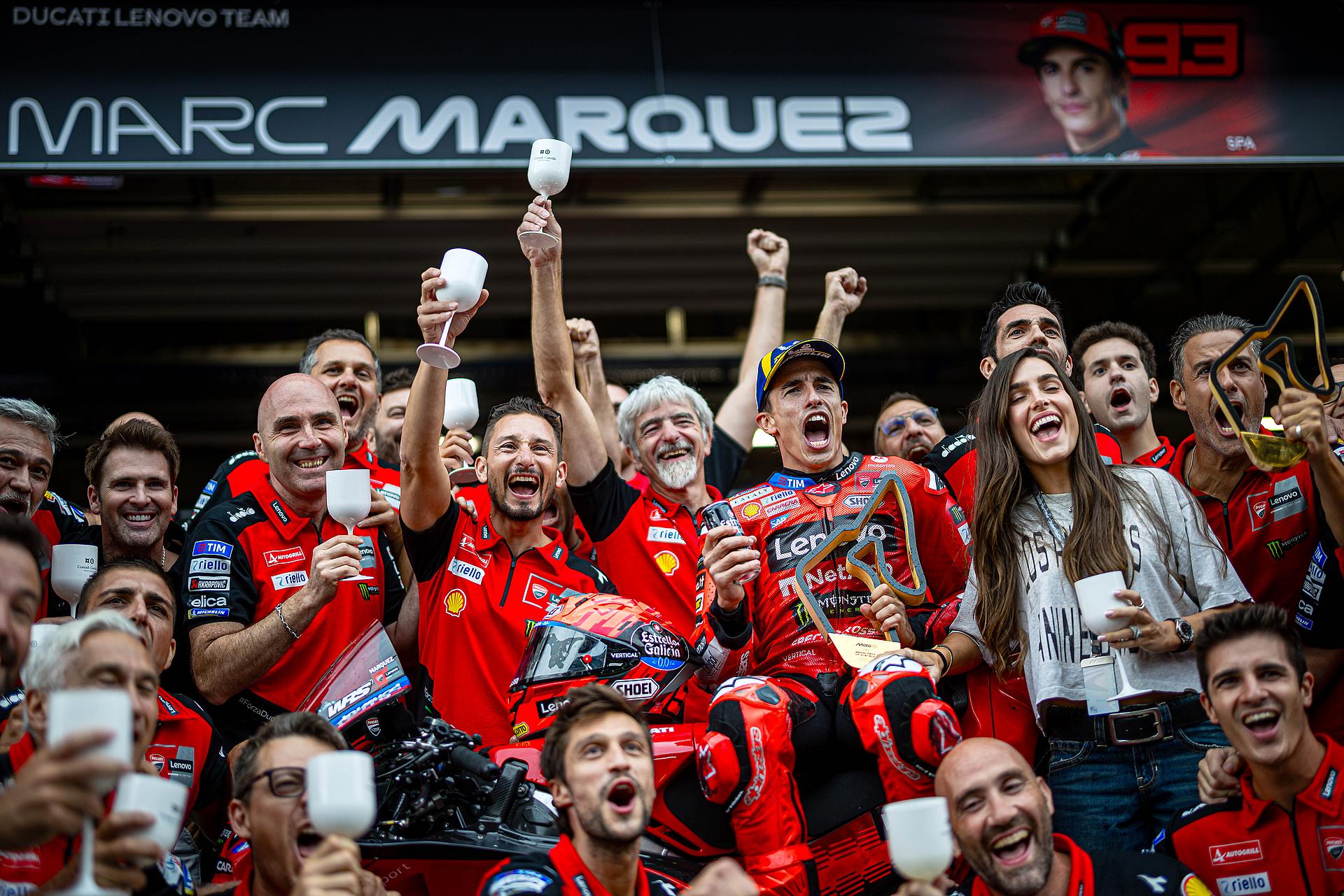 Nach dem zwölften Grand Prix der Saison hat Marc Márquez nun 418 Punkte auf seinem Konto und baut seinen Vorsprung auf Alex Márquez auf 142 Punkte aus. Francesco Bagnaia liegt mit 197 Punkten Rückstand auf seinen Teamkollegen auf dem dritten Platz. Das Ducati Lenovo Team führt weiterhin die Teamwertung an (639 Punkte), und Ducati behauptet auch den ersten Platz in der Herstellerwertung (467 Punkte). Das Ducati Lenovo Team übersiedelt bereits nach Ungarn, wo in fünf Tagen im Balaton Park die MotoGP zum ersten Mal zu Gast ist.
