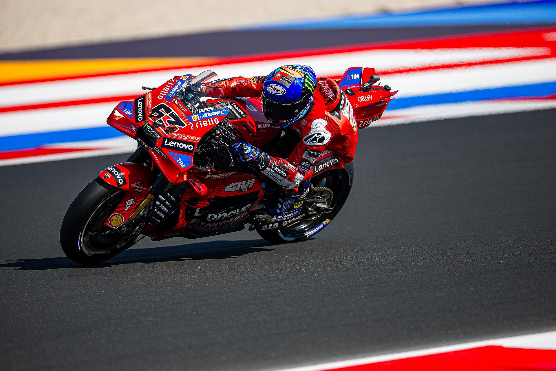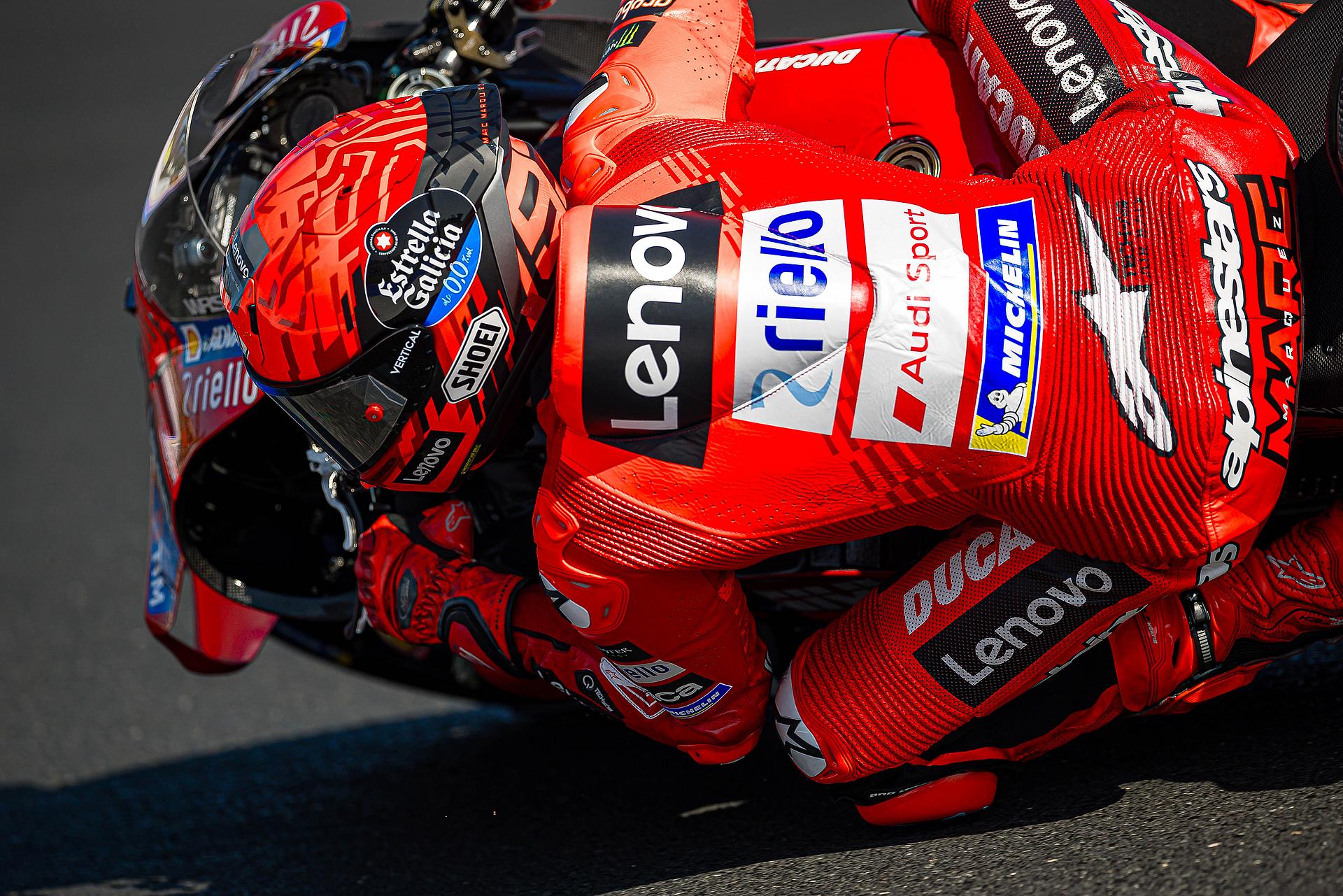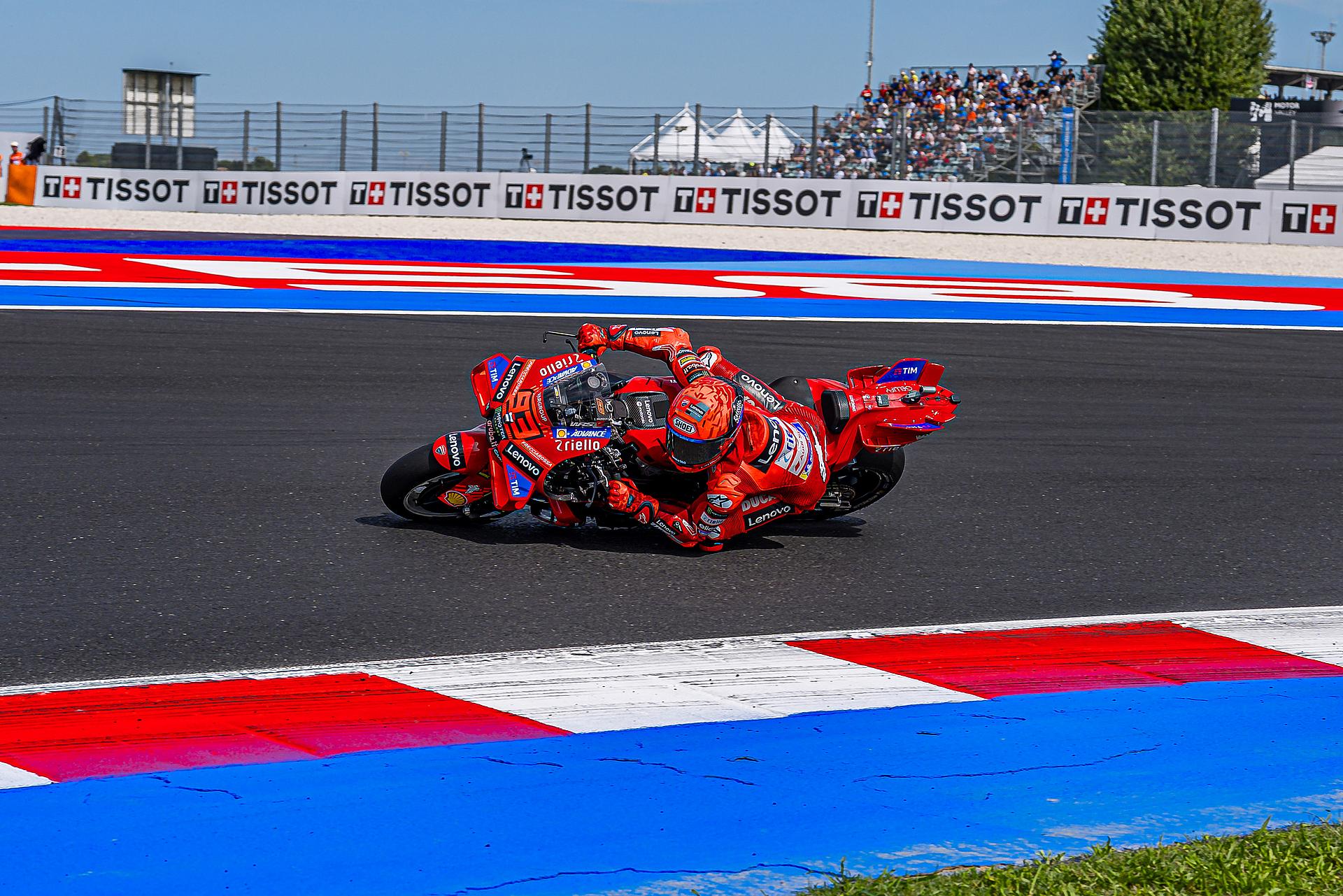 Das Ducati Lenovo Team hatte am Freitag einen positiven Start in sein Heimrennen auf dem Misano World Circuit Marco Simoncelli, wobei Marc Márquez dank einer Rundenzeit von 1:30,480 Minuten zehn Minuten vor Schluss die Trainingszeitenliste anführte. Auch Francesco Bagnaia zeigte eine starke Leistung, blieb während der gesamten zweiten Session unter den Top Ten und beendete das Training schließlich als Vierter – 0,230 Sekunden hinter seinem Teamkollegen.