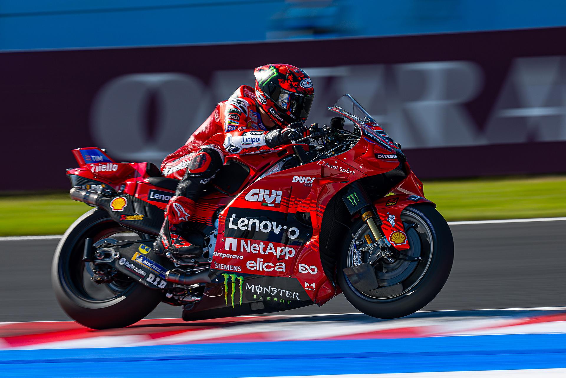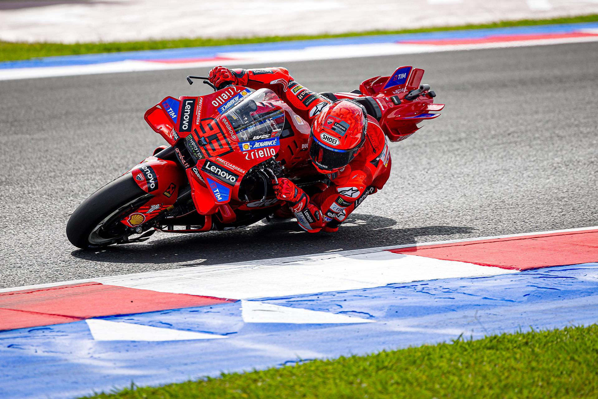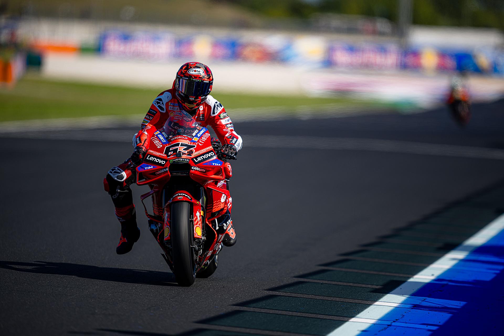 Das Ducati Lenovo Team hatte am Freitag einen positiven Start in sein Heimrennen auf dem Misano World Circuit Marco Simoncelli, wobei Marc Márquez dank einer Rundenzeit von 1:30,480 Minuten zehn Minuten vor Schluss die Trainingszeitenliste anführte. Auch Francesco Bagnaia zeigte eine starke Leistung, blieb während der gesamten zweiten Session unter den Top Ten und beendete das Training schließlich als Vierter – 0,230 Sekunden hinter seinem Teamkollegen.