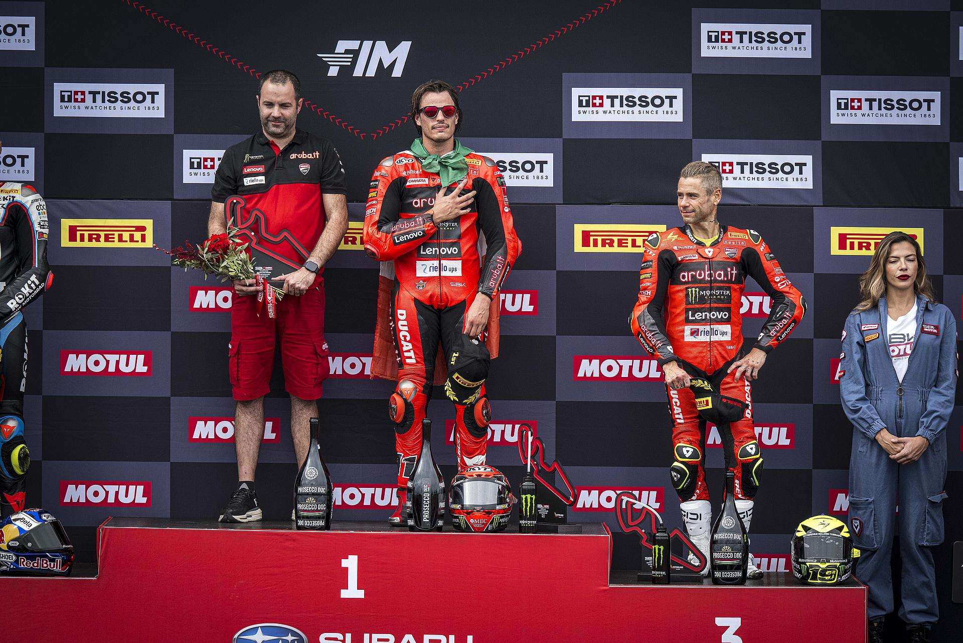 In Rennen 1 am Samstag trennten nur dreißig Tausendstelsekunden Nicolò Bulega vom Sieg. Bulega startete von der Pole-Position, die er sich zuvor in der Superpole mit einem neuen Streckenrekord gesichert hatte, und lieferte sich in den ersten Runden ein intensives Duell mit Razgatlioglu (BMW), wobei beide Fahrer ständig die Führung wechselten. In den letzten vier Runden startete er eine aggressive Attacke, fuhr zweimal die schnellste Runde, musste sich aber letztendlich mit dem zweiten Platz begnügen.